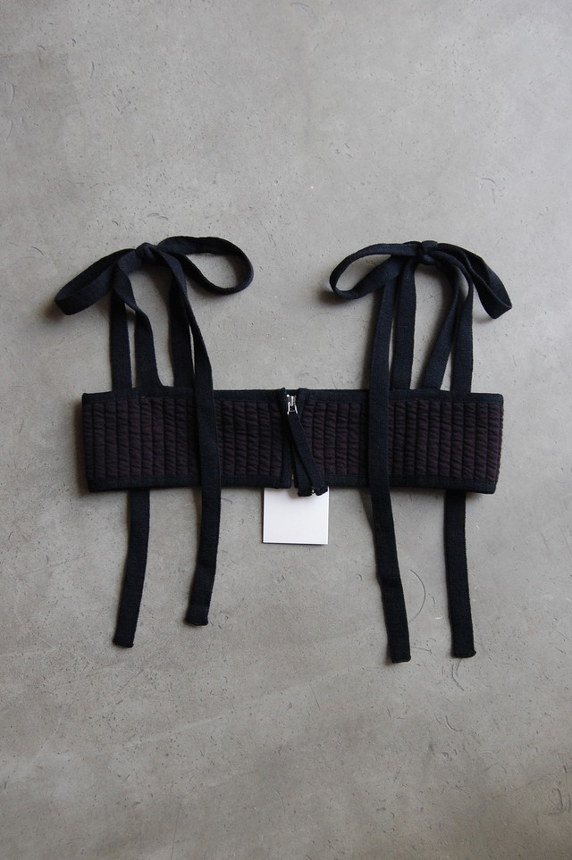 ステッチの入った身ごろを使用した華奢なビスチェ。 肩紐がリボンで調整可能。 リボンの長さが長く、レイヤードのポイントです。 ファスナーを前向きで着ても後ろ合わせでも着ていただけます。 シーズンレスアイテムで色々なインナーに合わせてお楽しみください。 色 : ブラック 素材: 本体:コットン61%、ポリエステル38%、ポリウレタン1% 別布:ウール100% ⚫︎商品のお写真は出来る限り実物のお色に近付けるようにしておりますが、お客様のお使いのモニター設定、又は照明等により実際の商品と色味が異なる場合が御座います。 ⚫︎返品・交換は基本的に受け付けてません。 ⚫︎こちらの商品は店頭でも販売しております為、行き違いでSOLD OUTとなってる場合が御座います。予めご了承くださいませ。