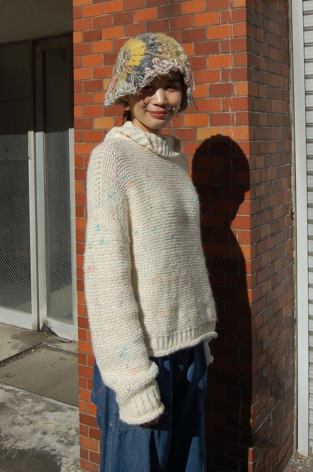 まるで日だまりをそのまま編み込んだような、 やわらかな手ざわりのニットプルオーバー♡ ふっくらとした編み地に、さりげないカラーネップが散りばめられて とってもかわいい…! スタイリングにもほんのりと彩りを添えてくれます。☺︎ 肩の力を抜いたシルエットは、デニムにもスカートにも何にでも合っちゃいます◯ デイリーにたくさん着ていきたい感じ!とてもおすすめです♡♡ size: 着丈 約55cm 肩幅 約64cm 身幅 約59cm 袖丈 約50cm 色 : 白 素材 : 記載なし ちくちく感のない柔らかなニットです ポケット: --- 着脱方法 : 被り 裏地:無し 透け感:無し コンディション:特筆するような目立つダメージはなく、古着慣れされている方ですと問題なく着用していただけるかと思います。 ⚫︎着用スタッフは身長167cm、平均体重です。 ⚫︎コンディションは出来る限りお写真にて掲載しておりますが、古着特有の使用感、小さなほつれがある場合が御座います。古着ということを理解頂いた上で購入をお願い致します。 ⚫︎商品のお写真は出来る限り実物のお色に近付けるようにしておりますが、お客様のお使いのモニター設定、又は照明等により実際の商品と色味が異なる場合が御座います。 ⚫︎返品・交換は基本的に受け付けてません。 ⚫︎こちらの商品は店頭でも販売しております為、行き違いでSOLD OUTとなってる場合が御座います。予めご了承くださいませ。