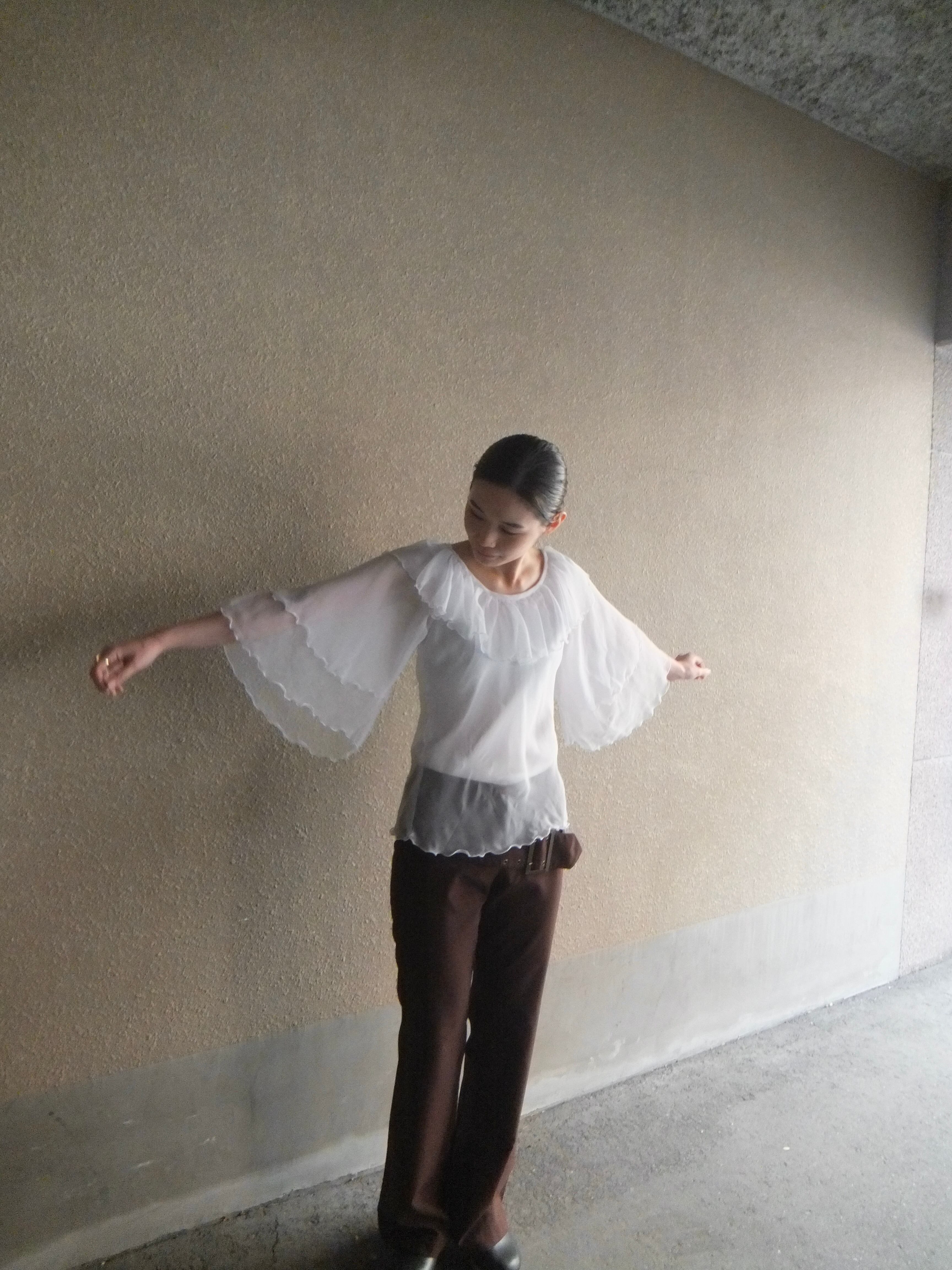 寒い季節にはカーディガンなどを羽織り、襟のフリルをちらっと覗かせても素敵ですよね◎