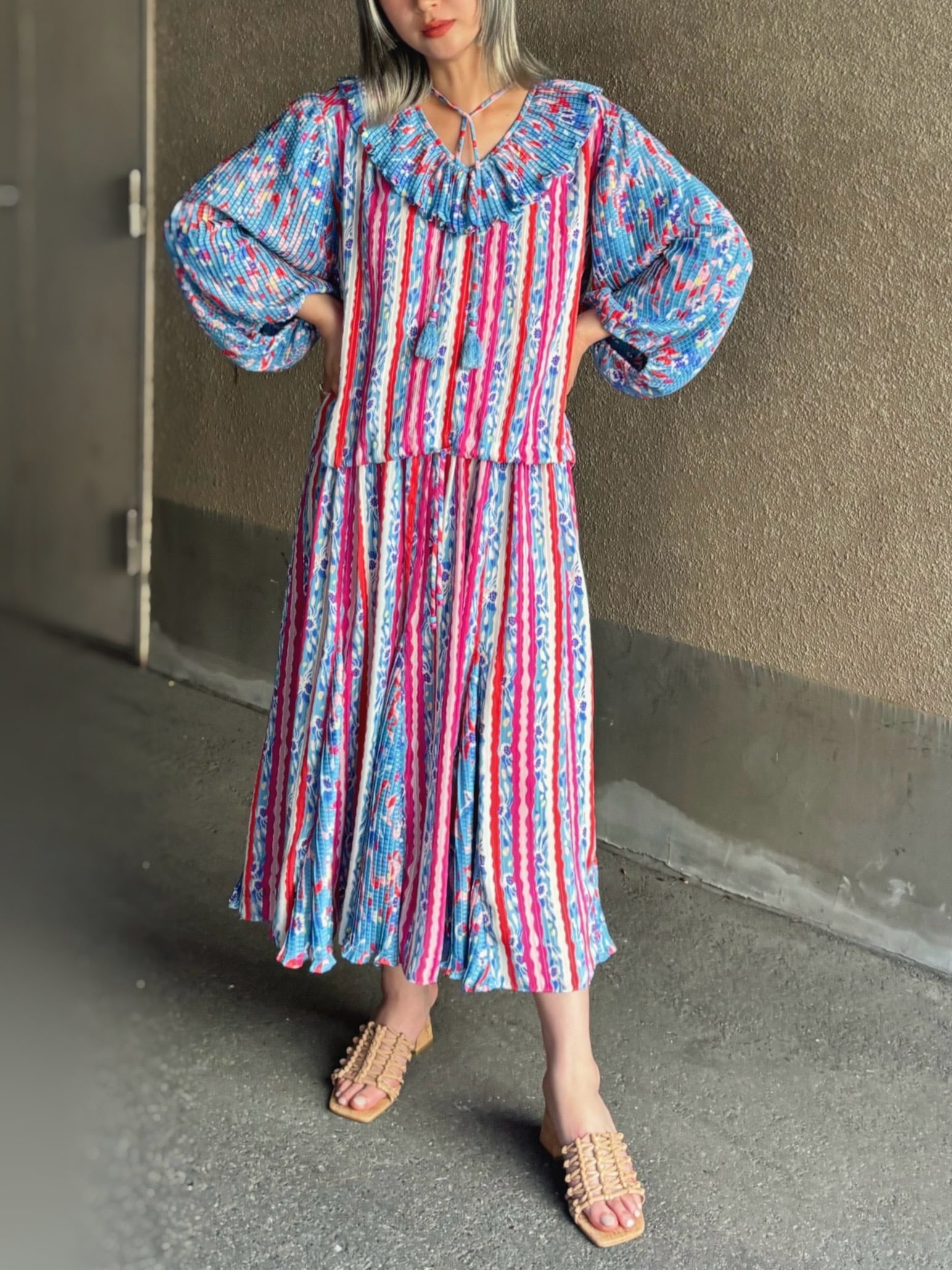 1980'S "Diane Fries" BLOUSE,SKIRT 2PCS SETUP
