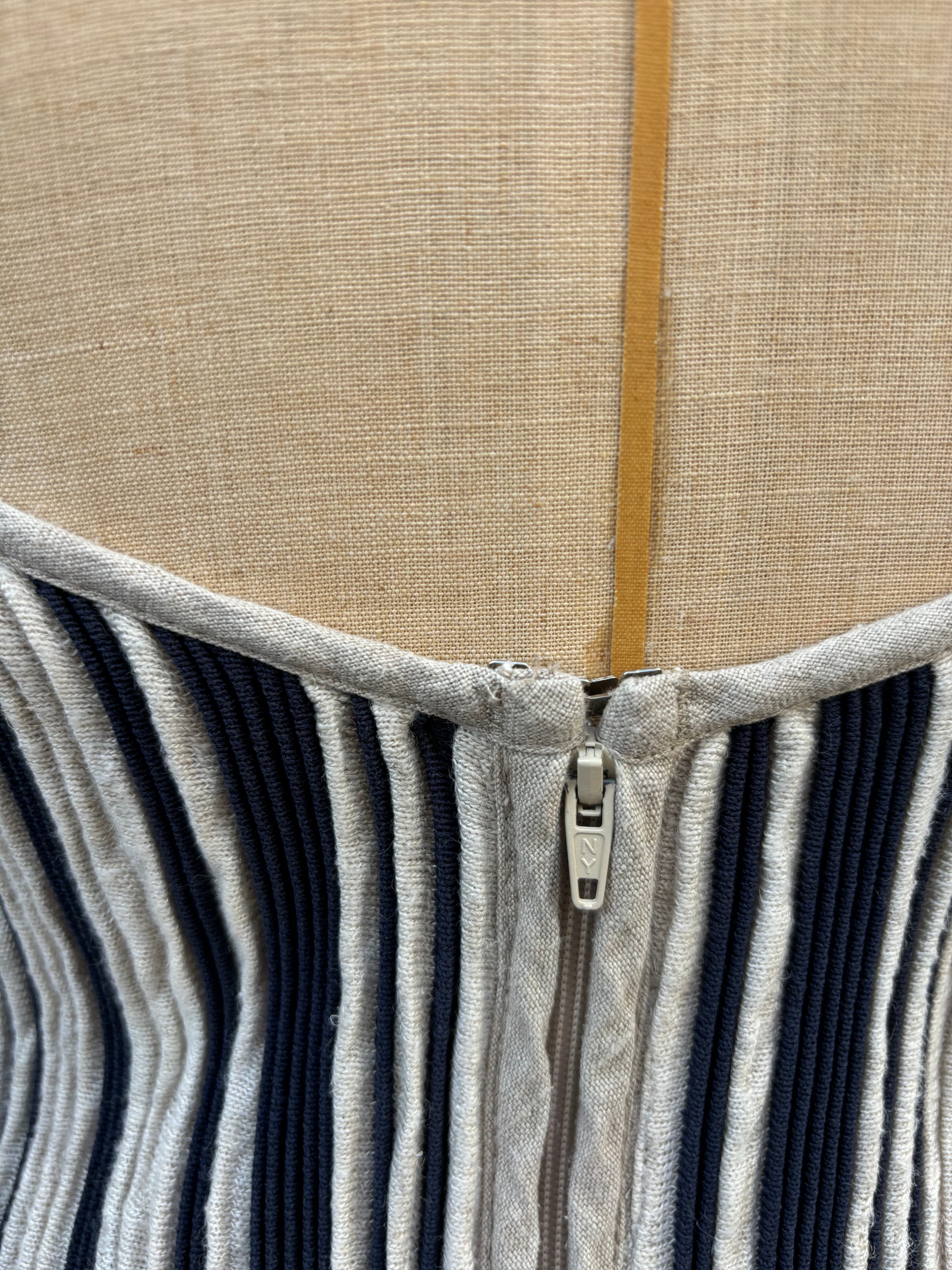 別生地のリネンでインバーテッドプリーツになっているバックスタイルもポイントです♡