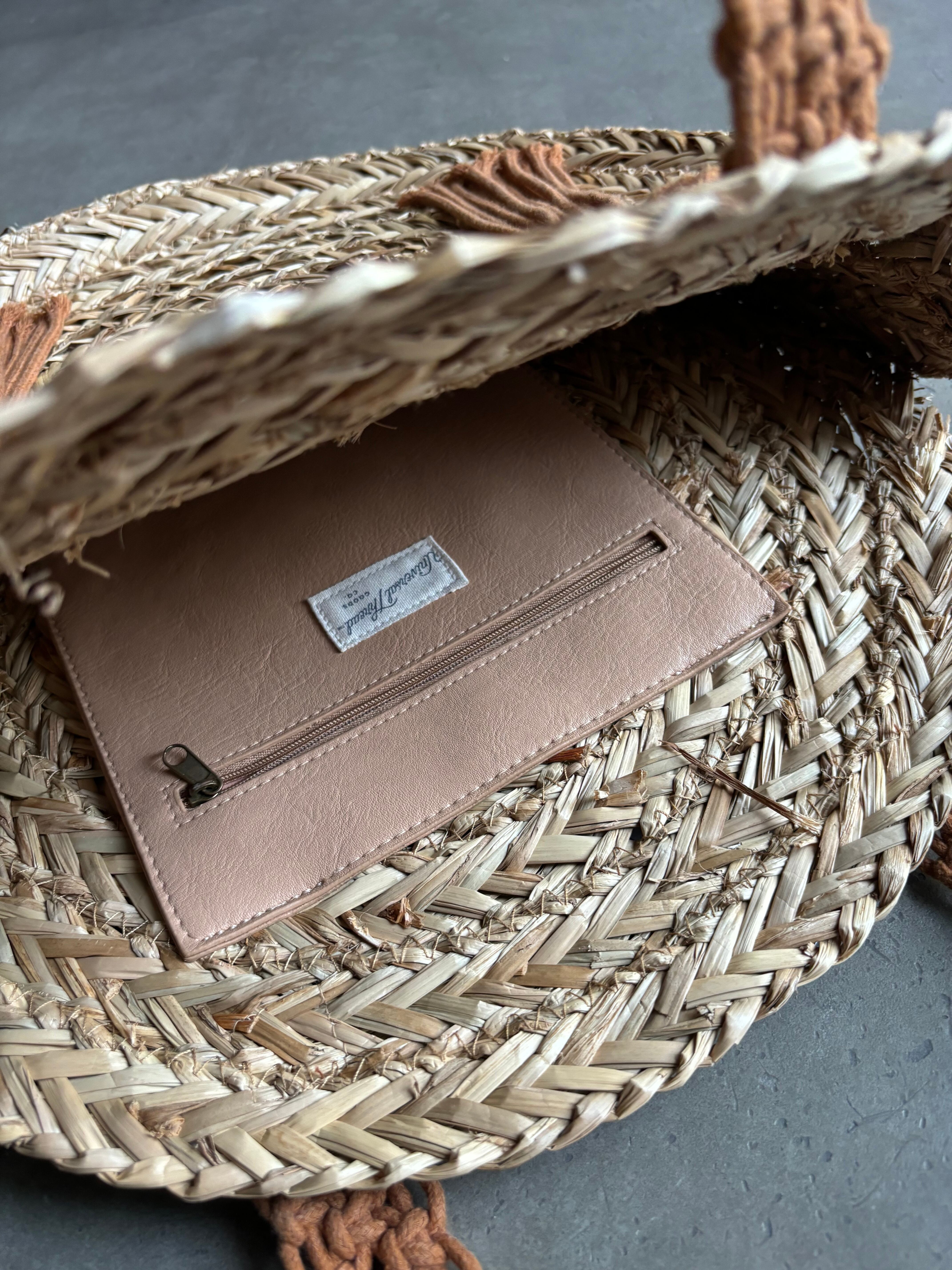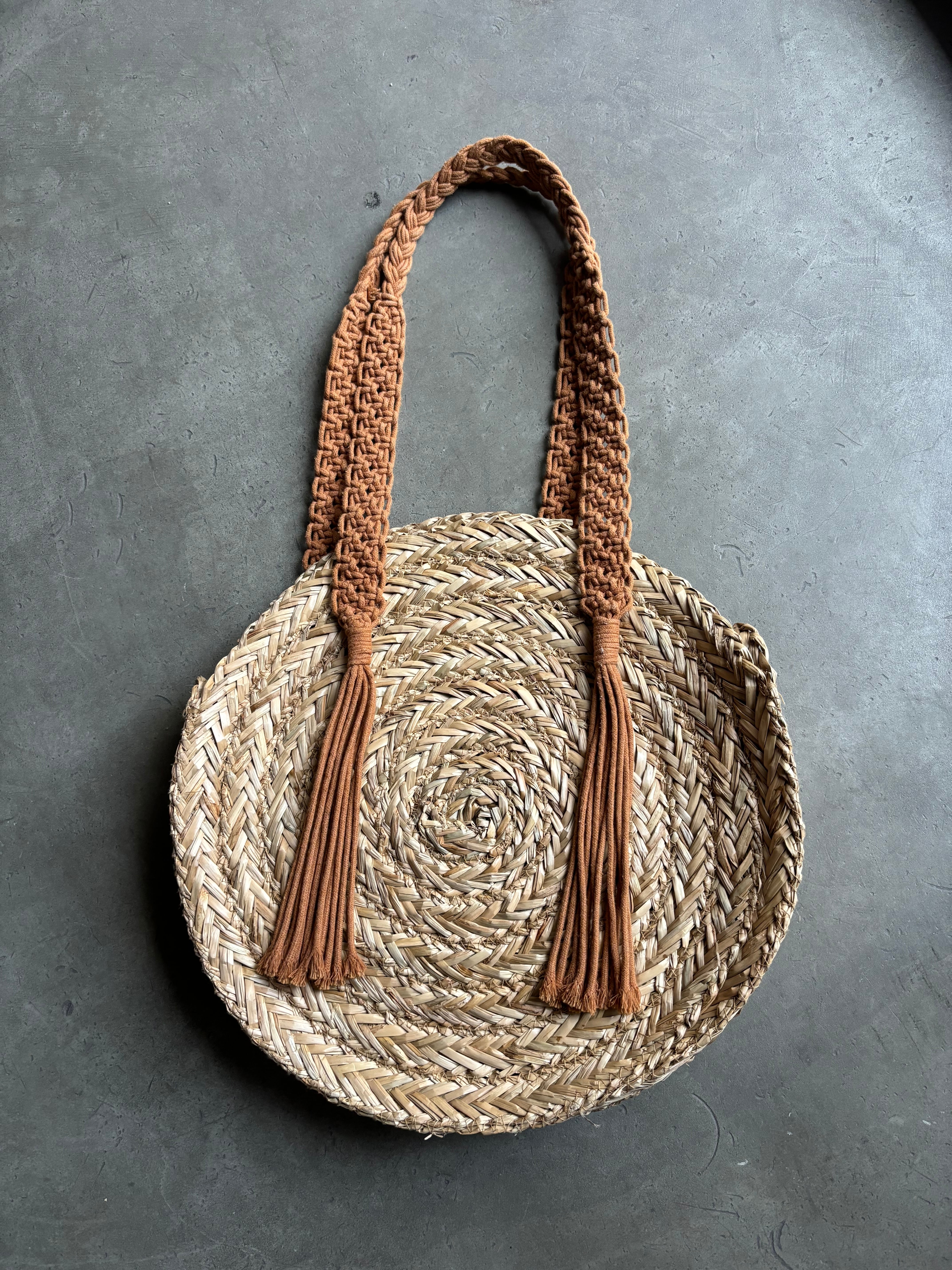 CIRCLE MOTIF RAFIA BAG