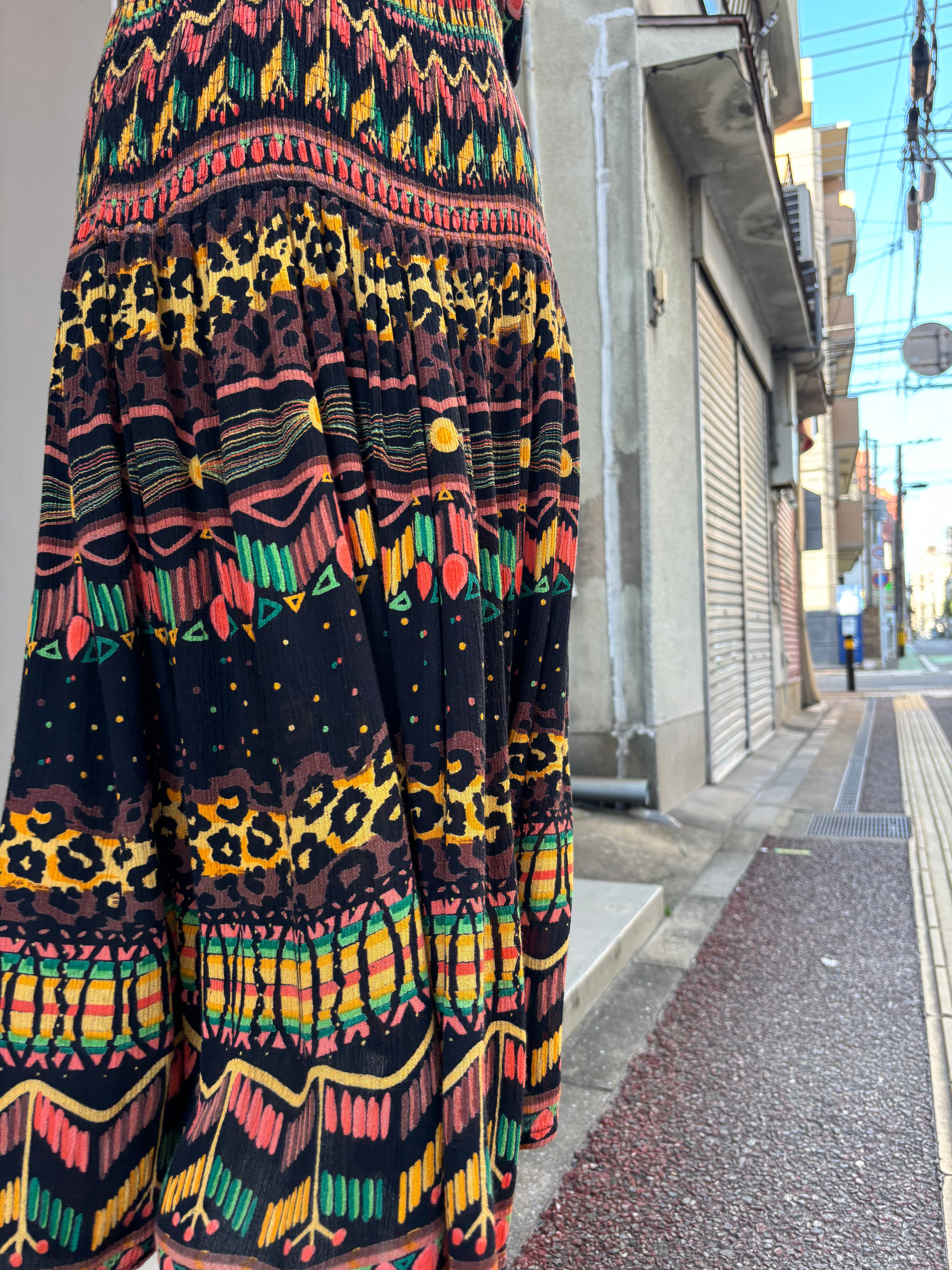 オリエンタルなモチーフに、レオパードや幾何学をミックスしたような80’sらしいエネルギッシュなテキスタイルがとにかく良すぎます。