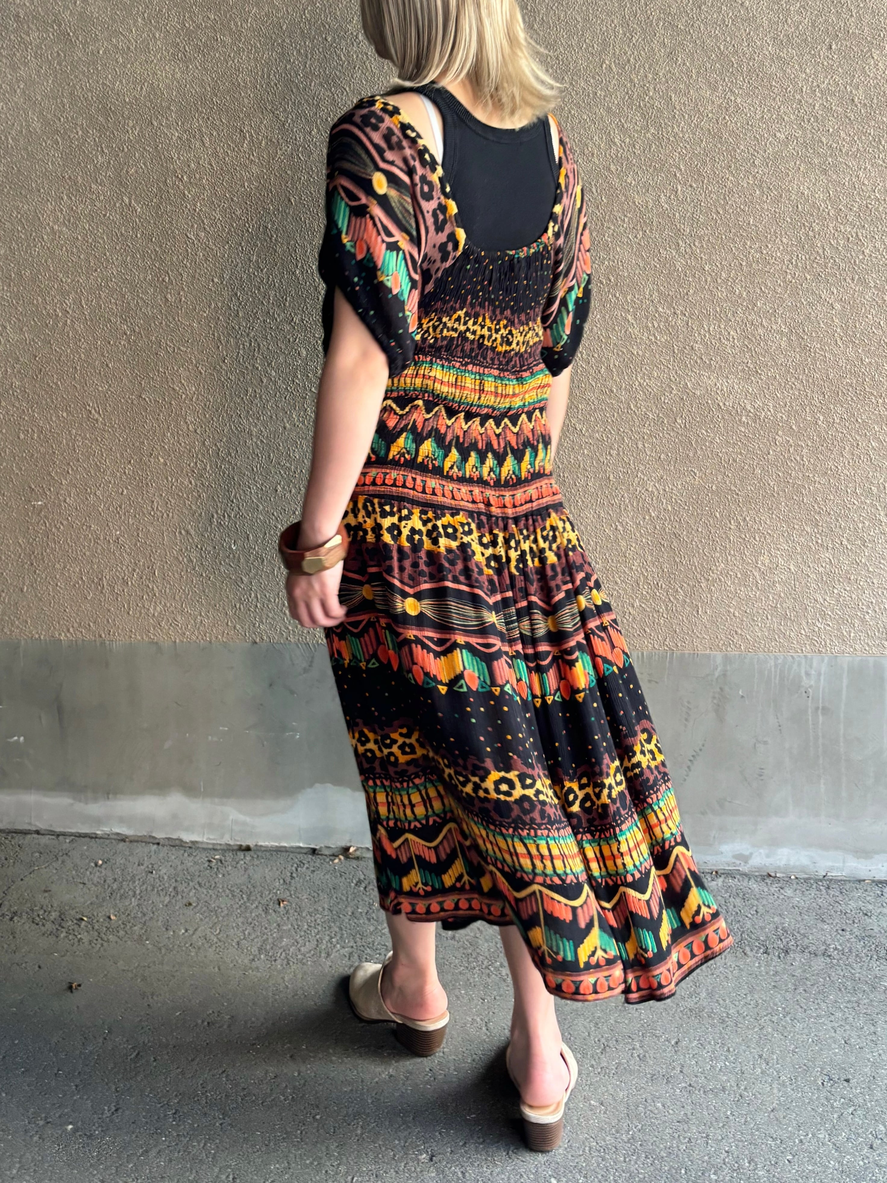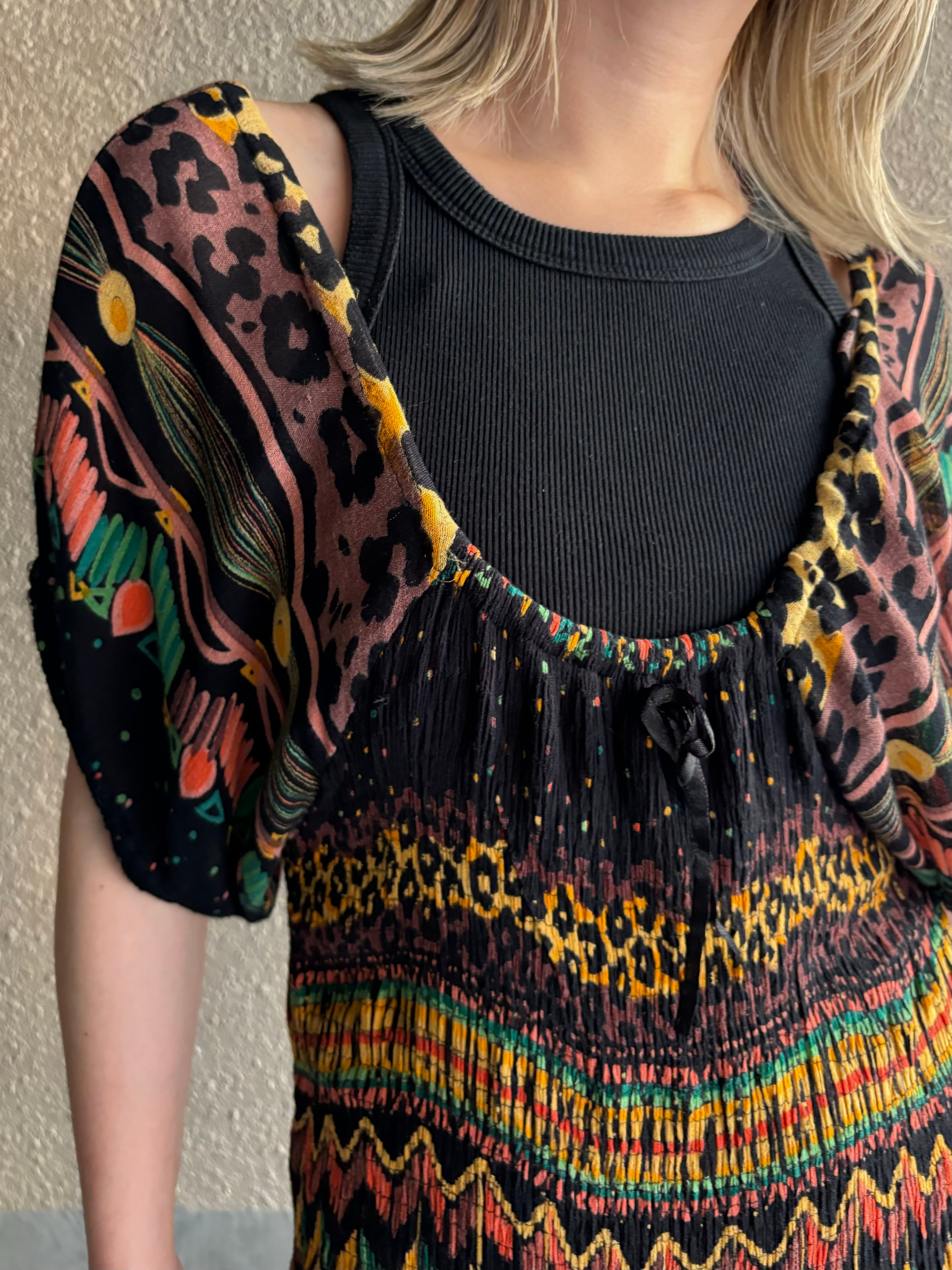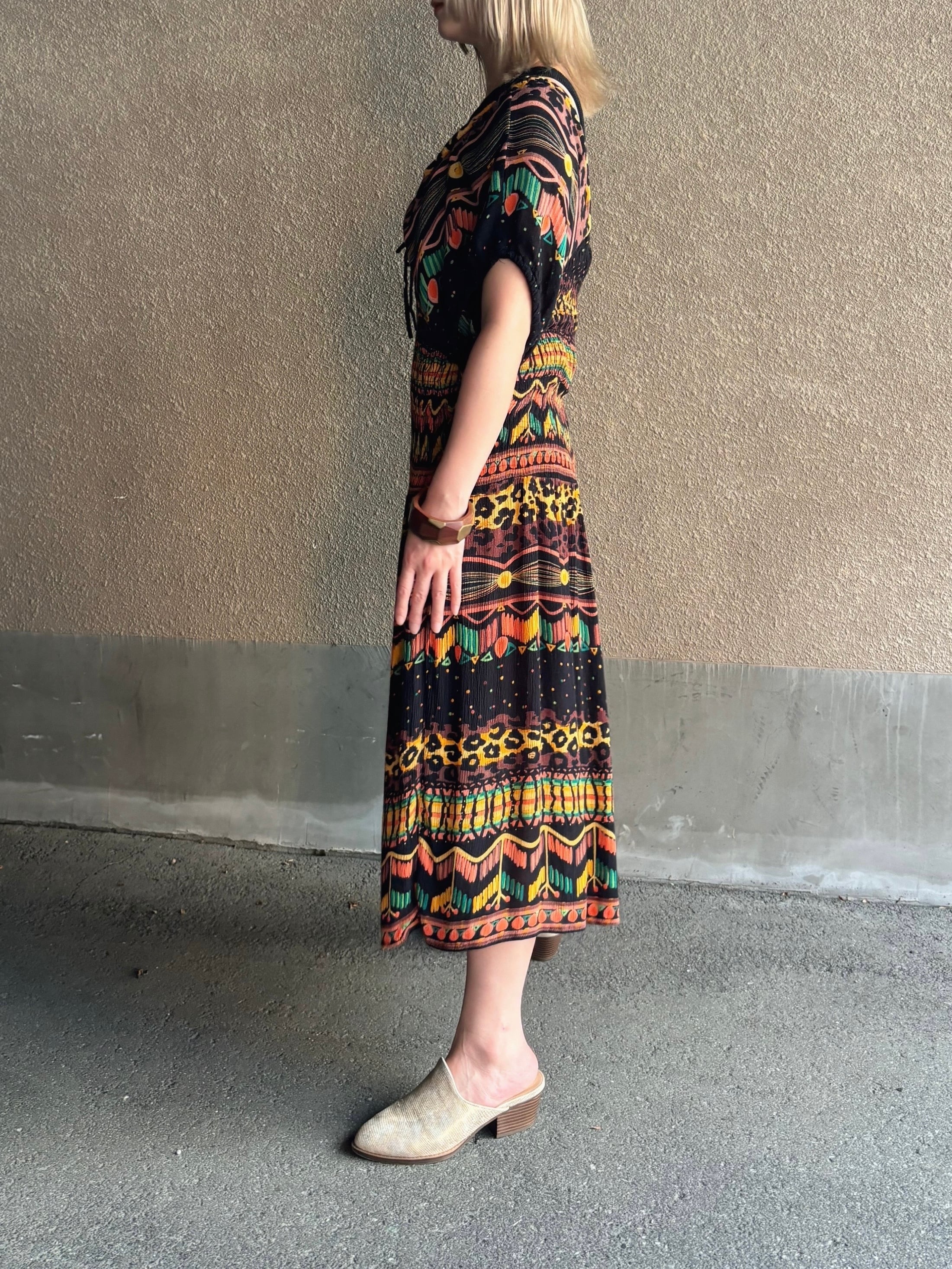 -1980'S INDIA GOOD TEXTILE RAYON DRESS