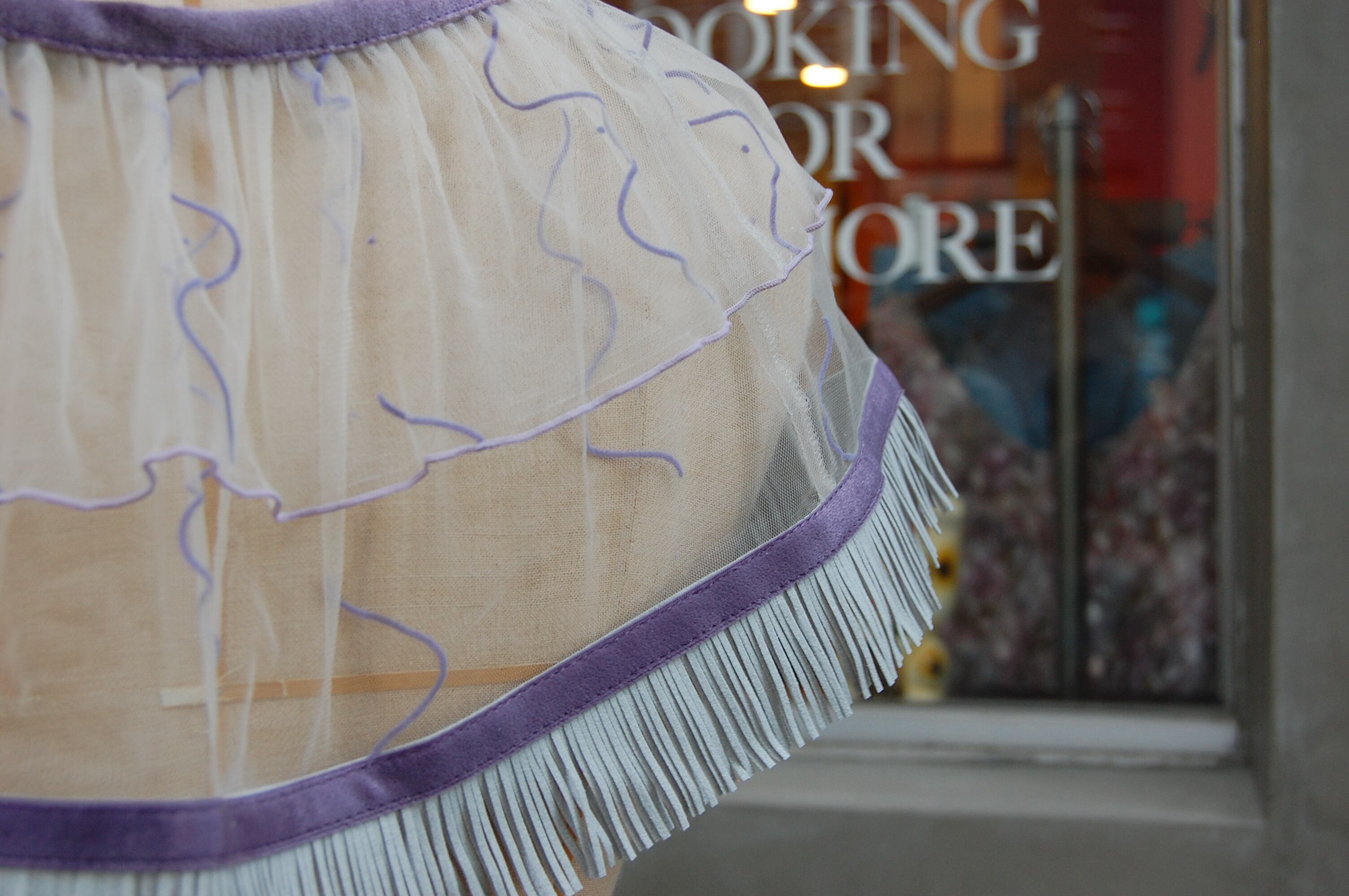 オリジナルのプリントを施した生地を使用したチュール部分は
