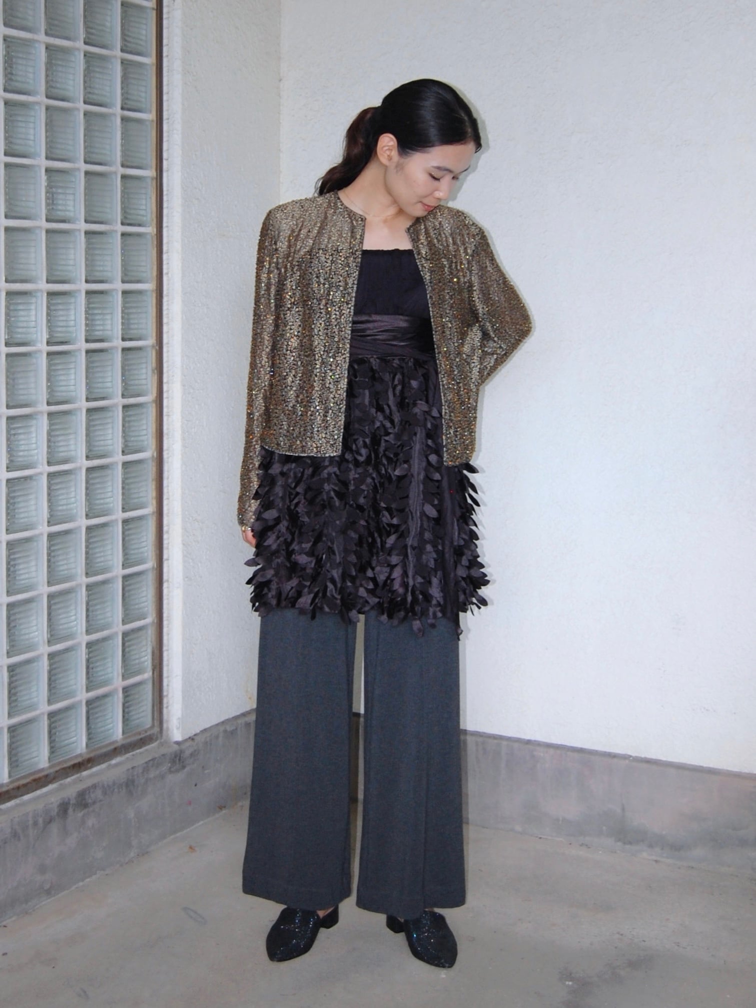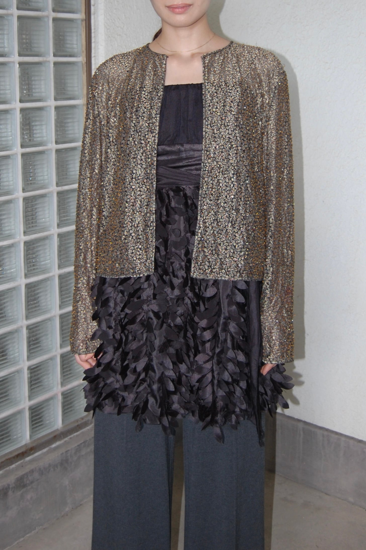 煌びやかに光るビーズが上品なジャケット