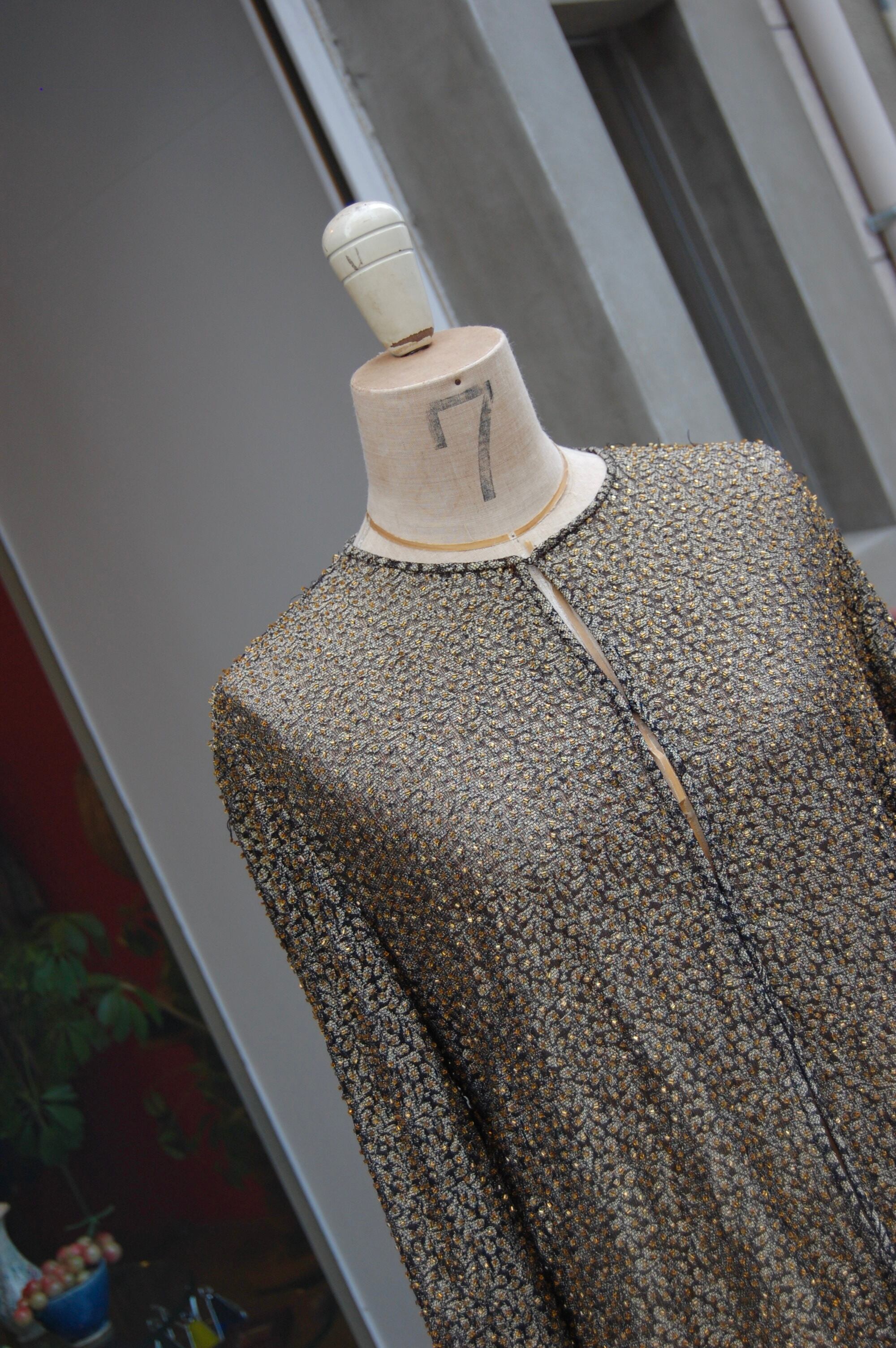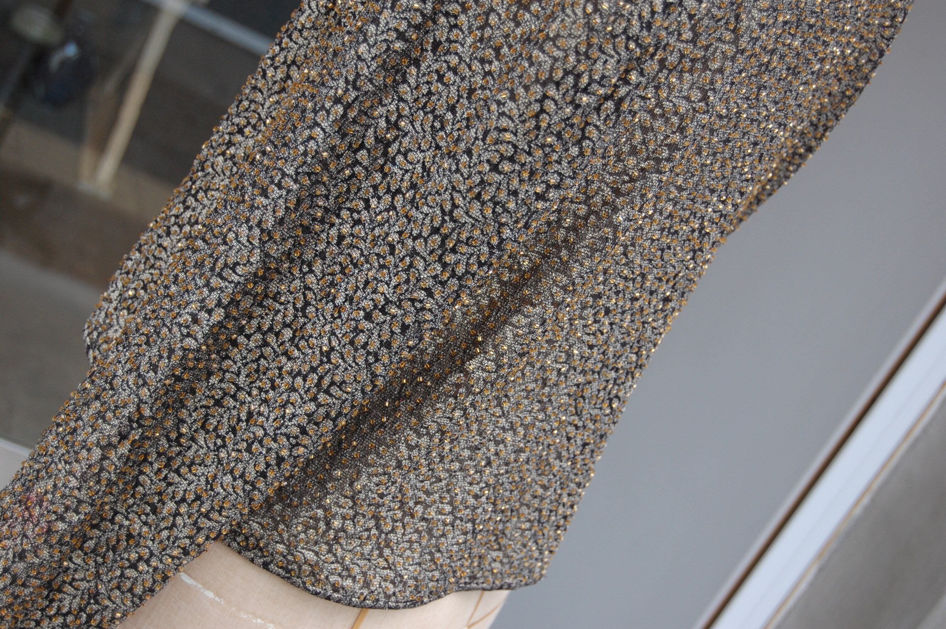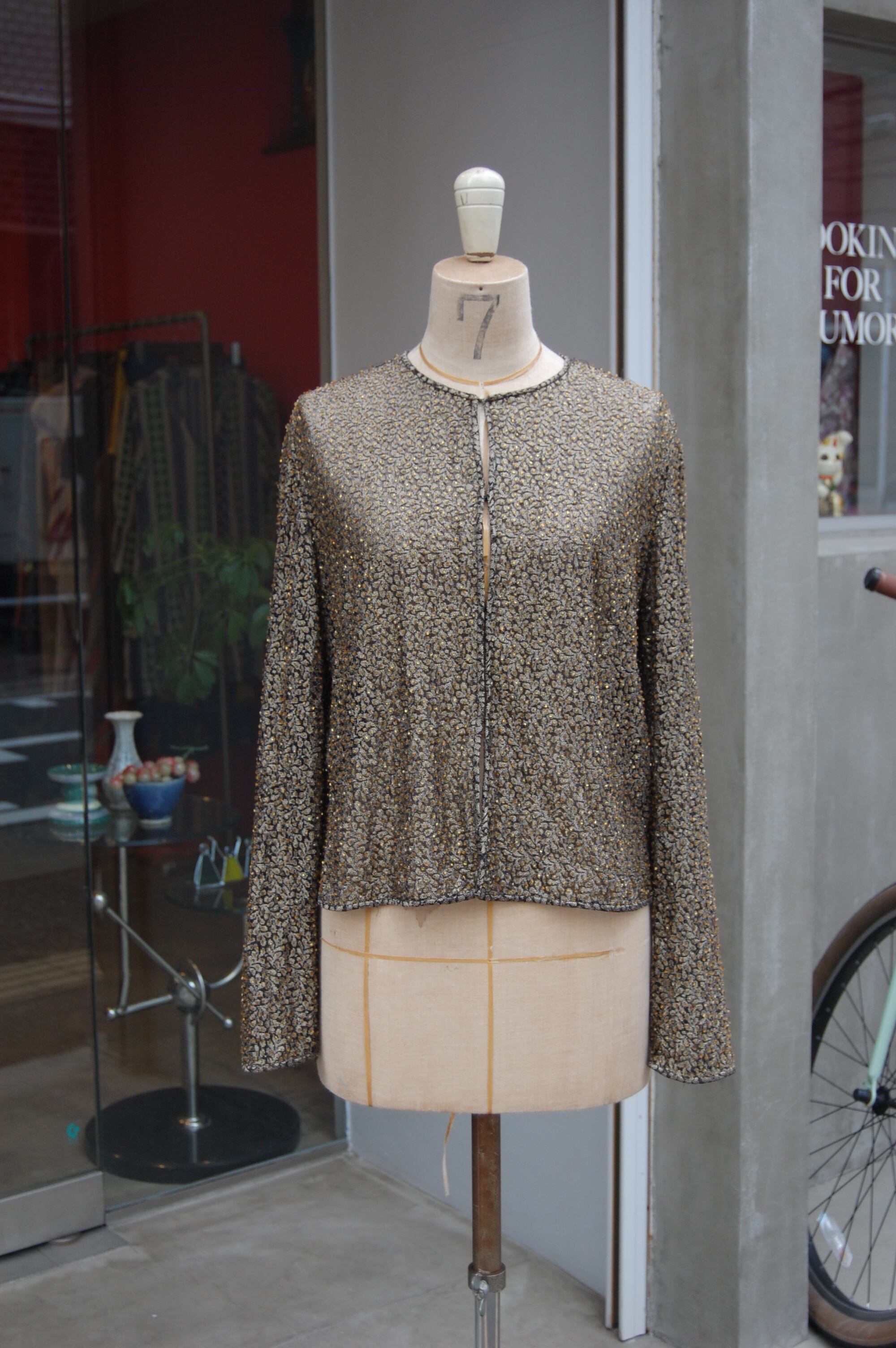 1980-90'S GOLD BEADED NO-COLLAR SHEER JACKET