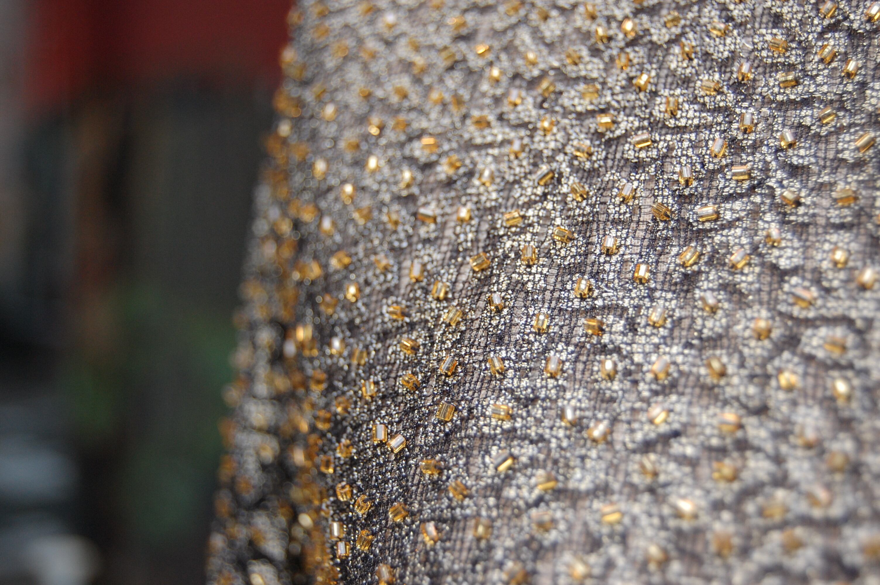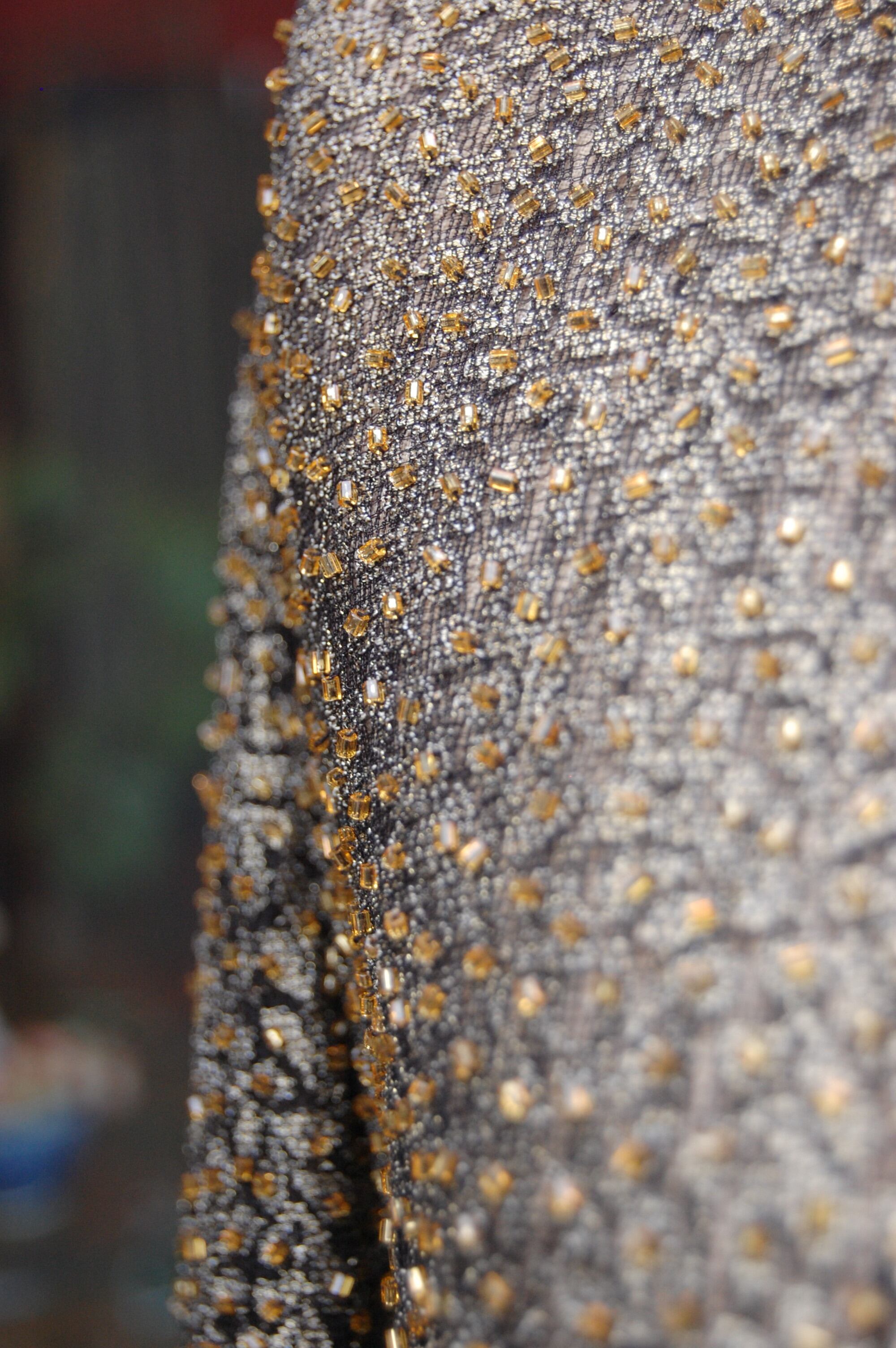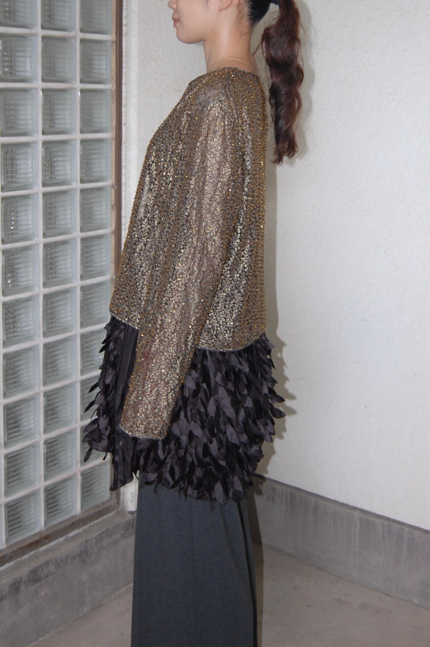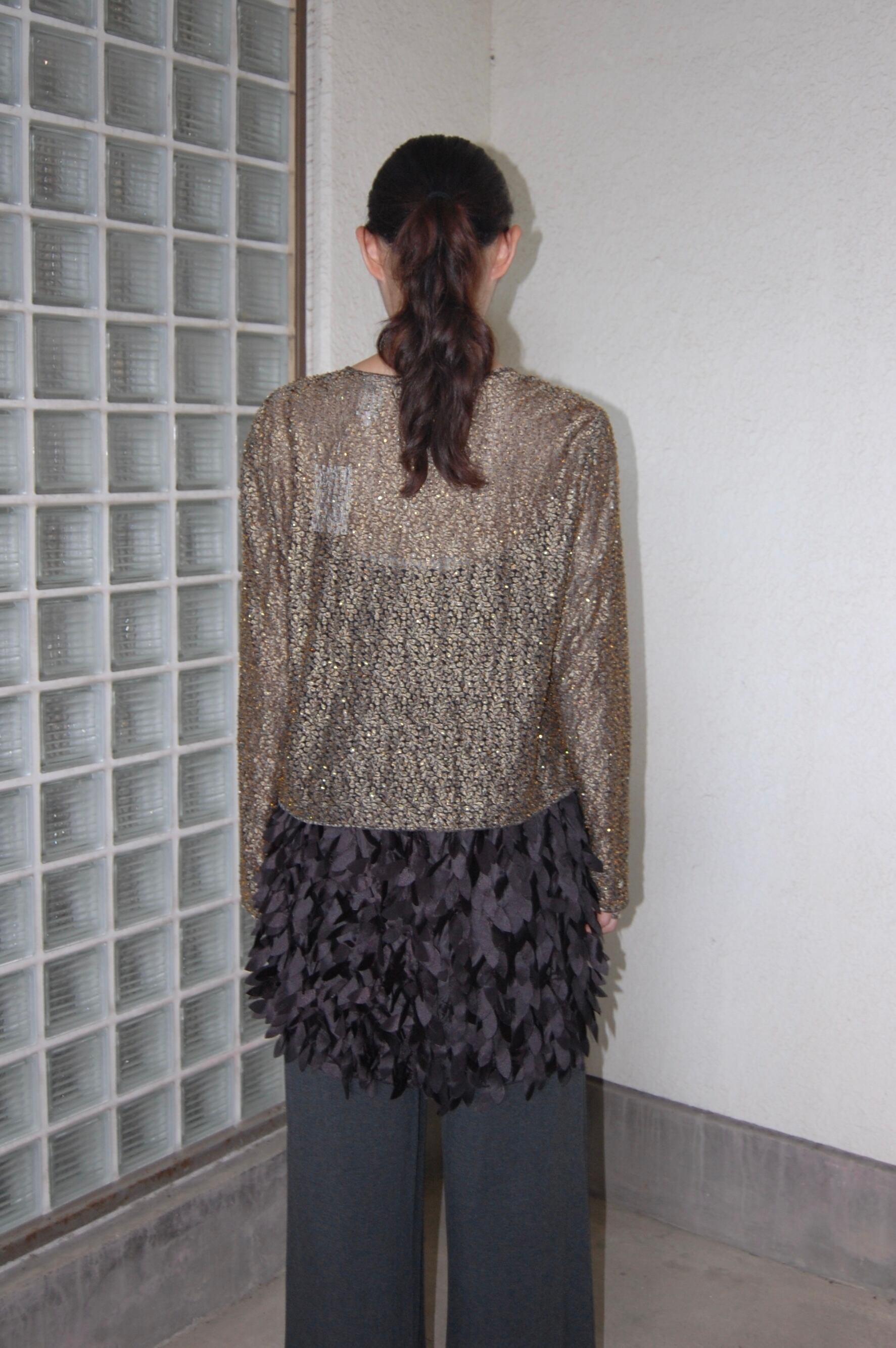 1980-90'S GOLD BEADED NO-COLLAR SHEER JACKET
