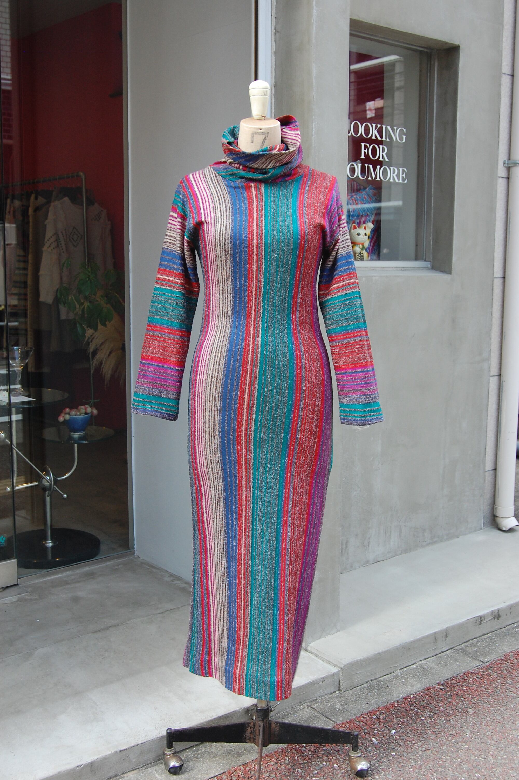 1970-80'S MULCH COLOR STRIPED KNIT DRESS,VEST 2PCS SETUP