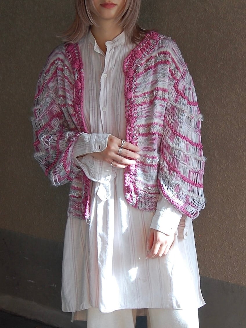 中にキャミソールや薄手のカットソーを合わせていただくことで、春や初夏まで幅広い時期にご着用いただけます◎