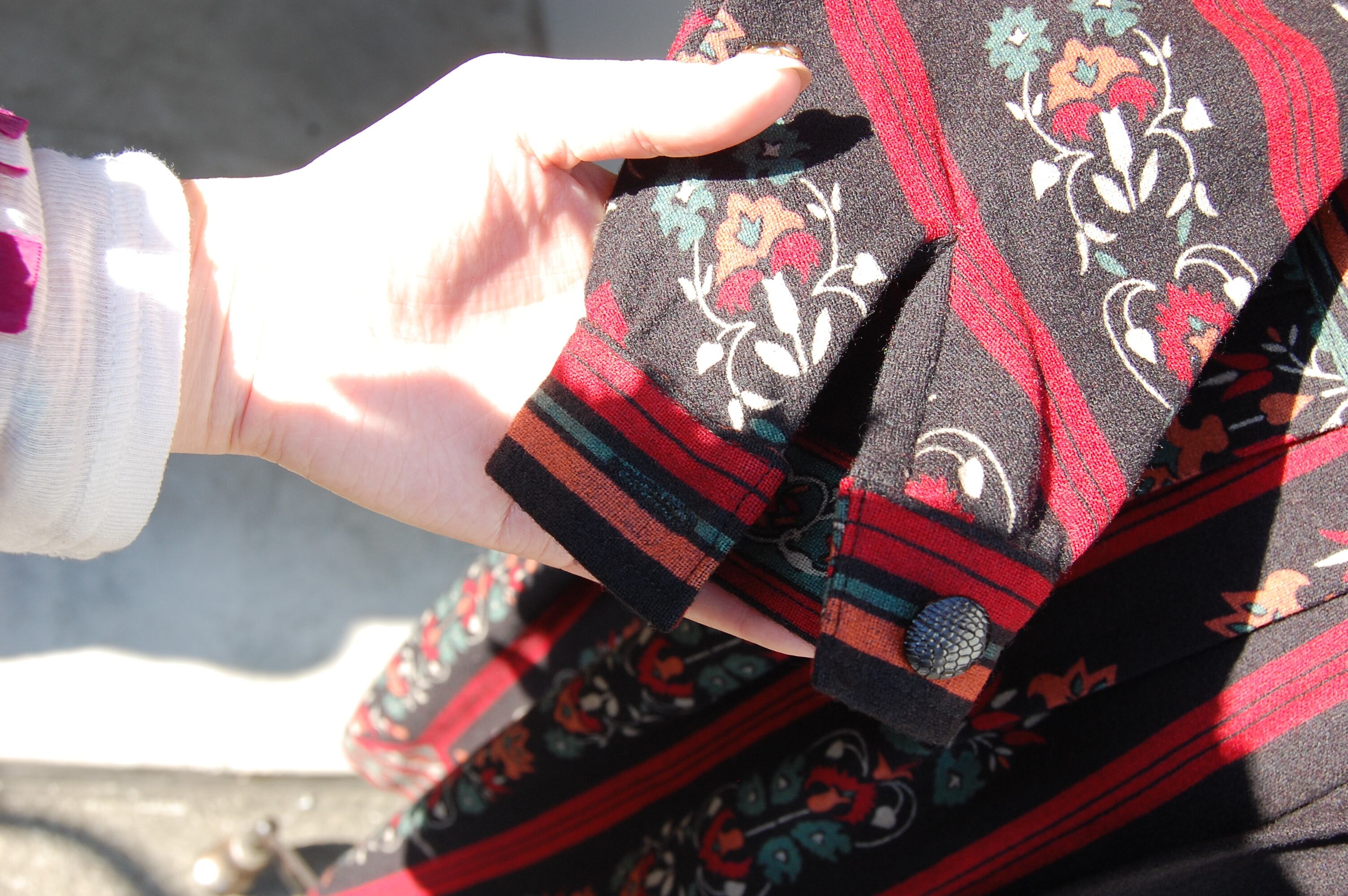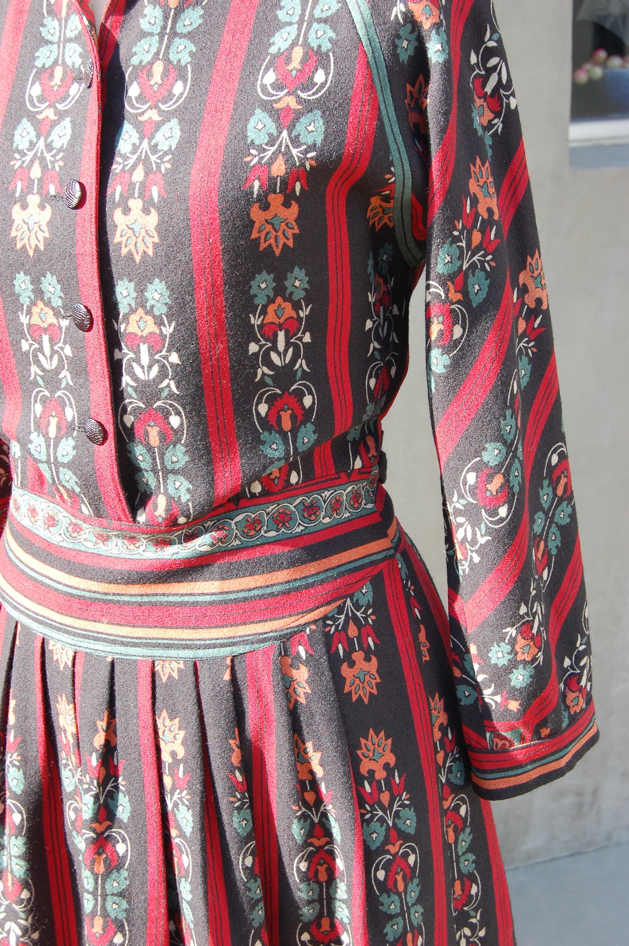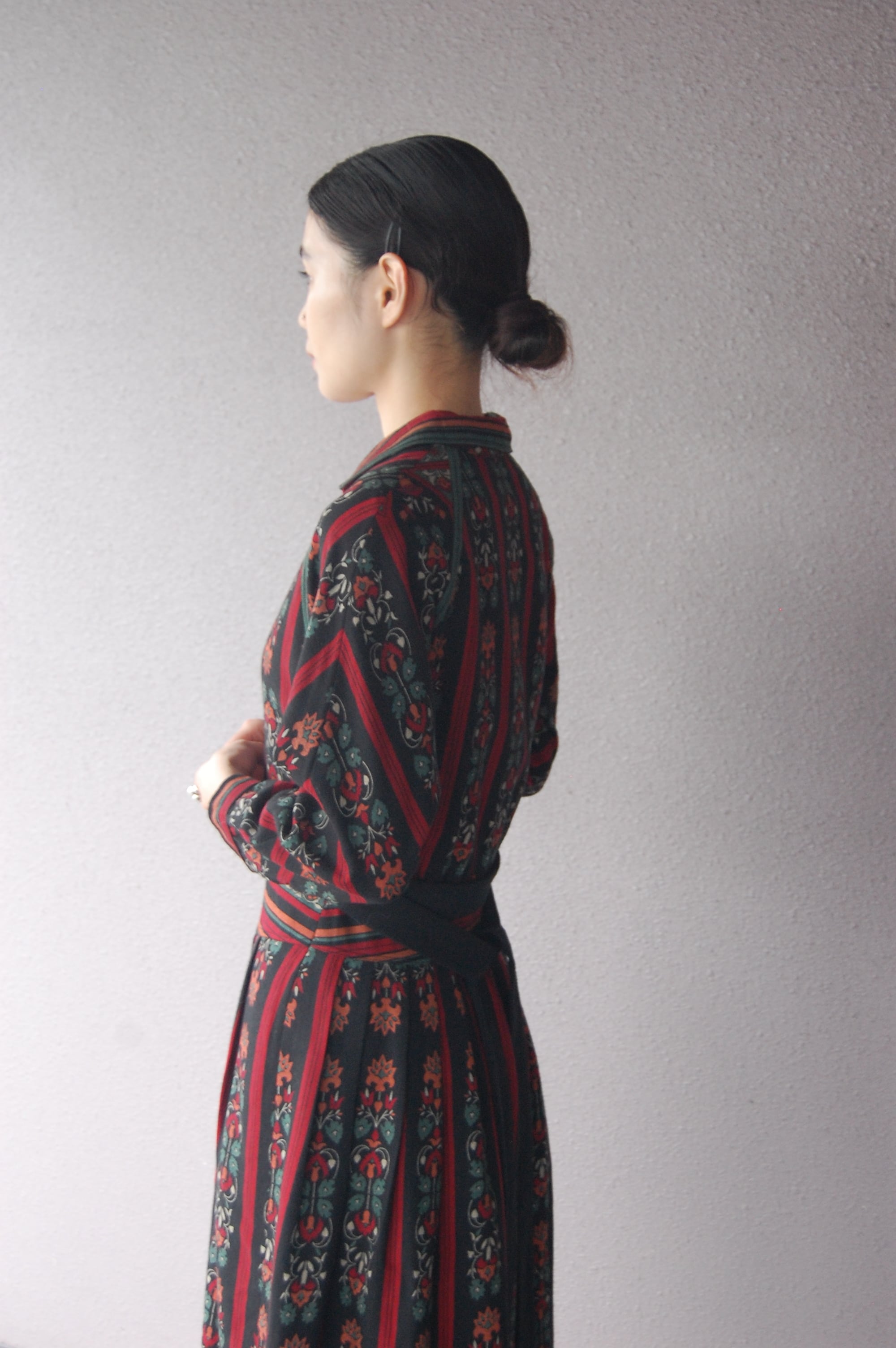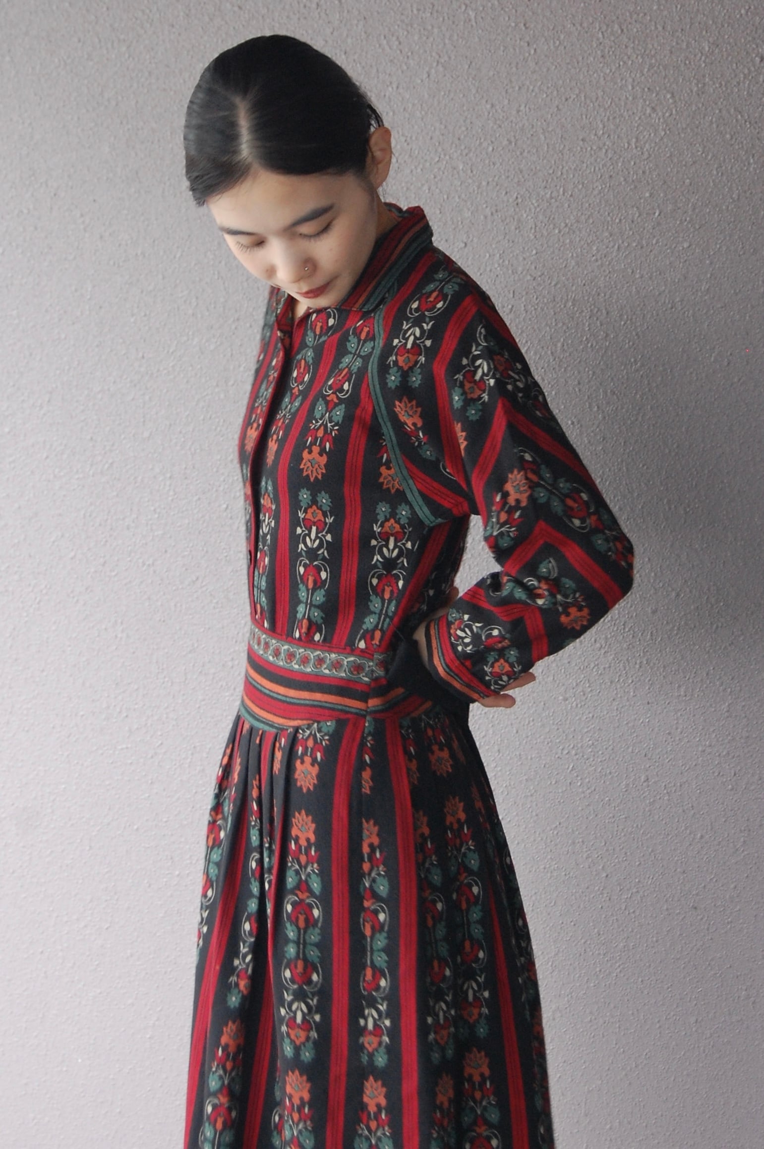 1950-60'S VINTAGE FLORAL PATTERN WOOL DRESS