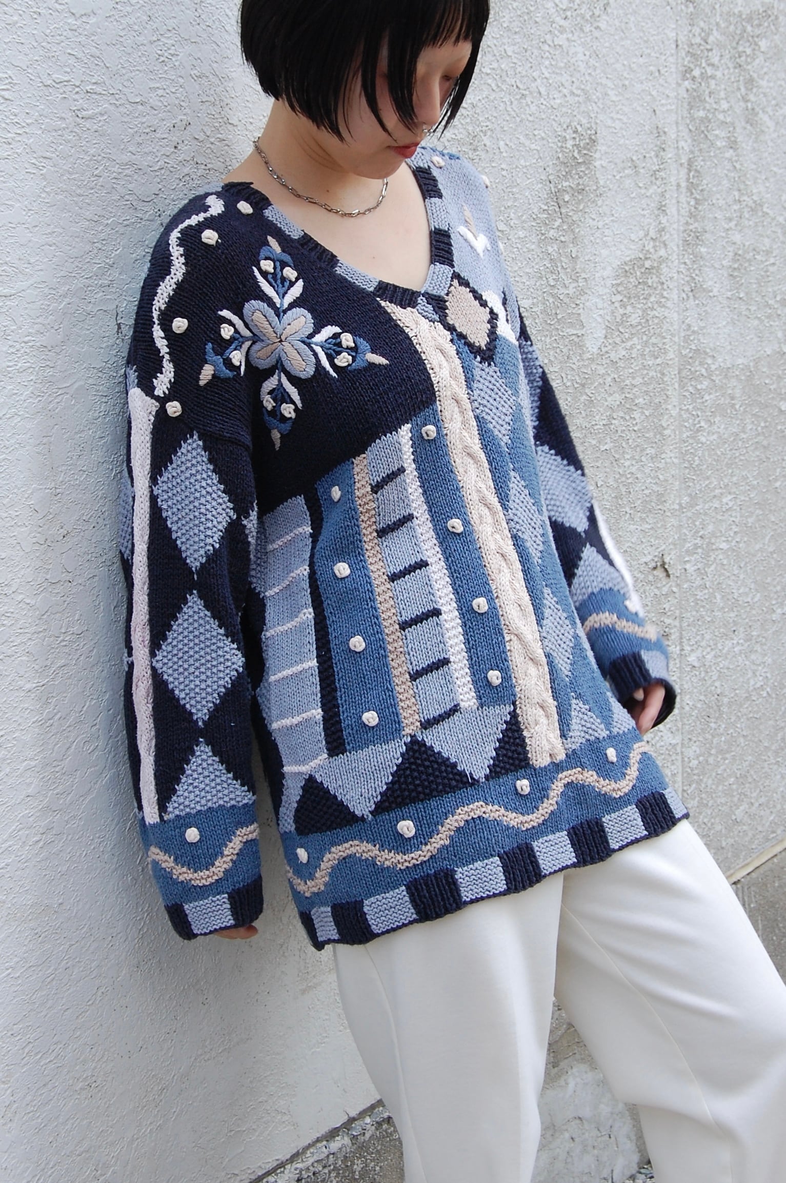 冬空に映えるような、爽やかな配色がかわいいコットンニットです♡