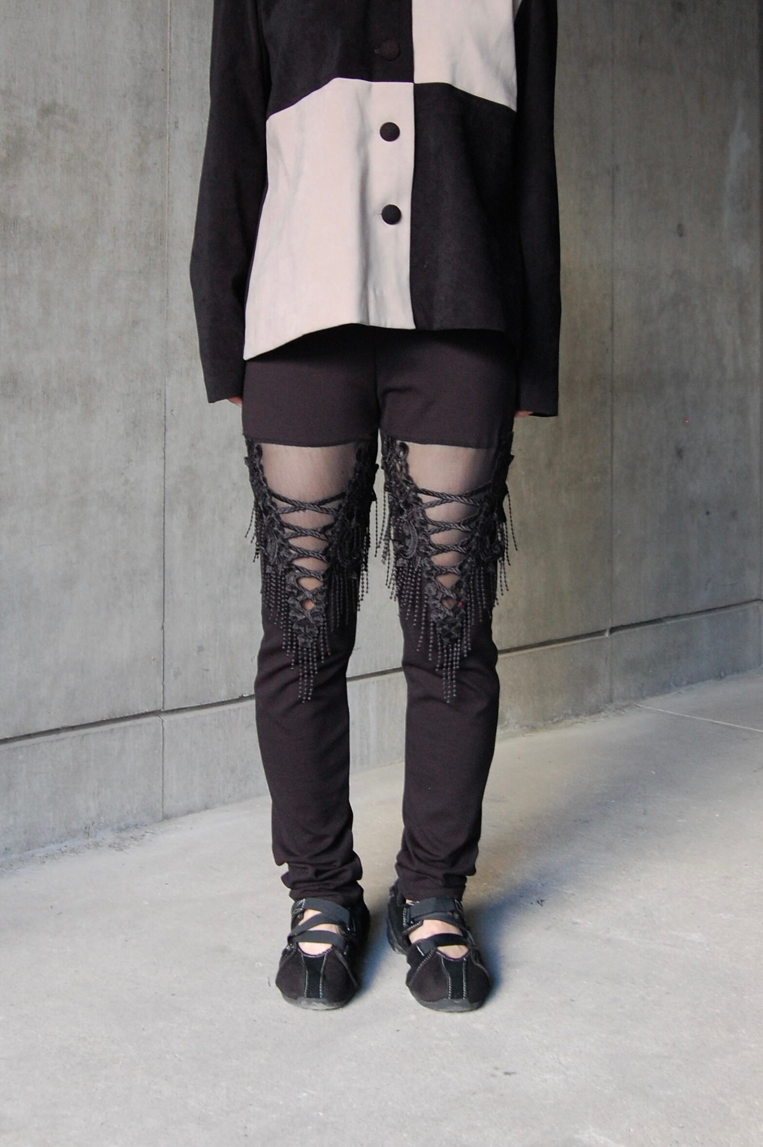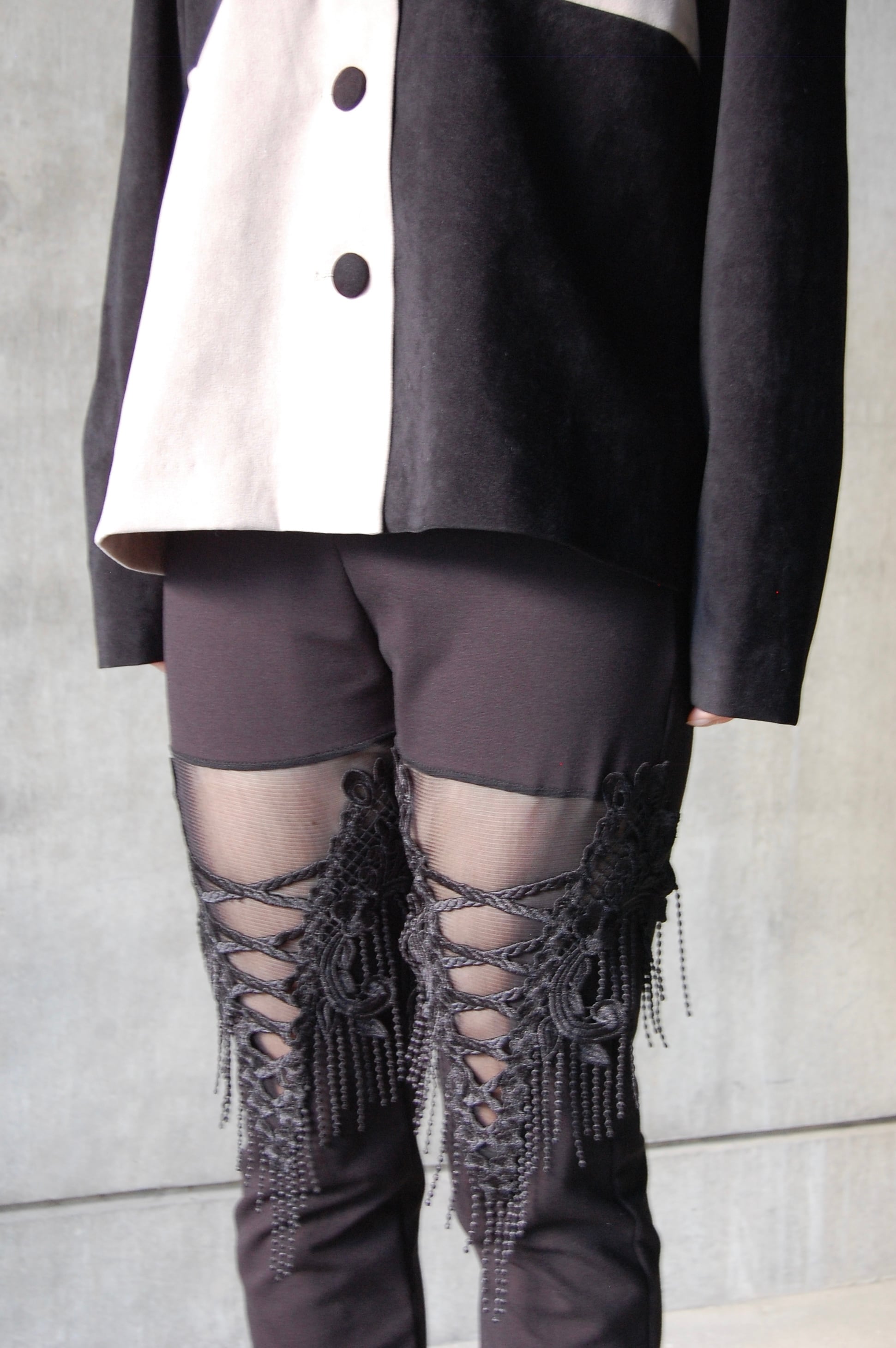 DEADSTOCK! FRANCE MADE LACE DESIGH LEGGINGS PANTS