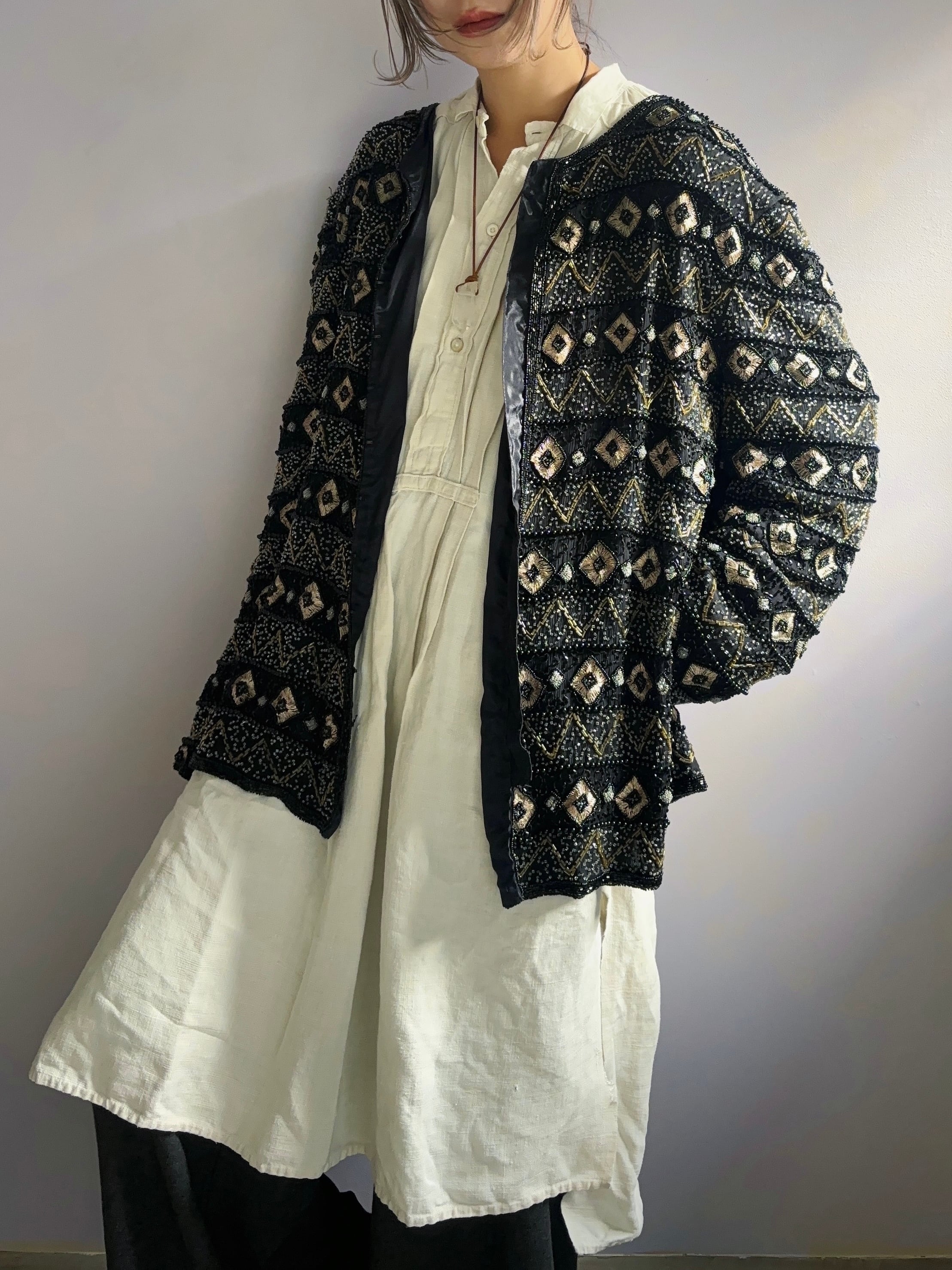 1980'S USA BEADED DESIGH NO-COLLAR JACKET