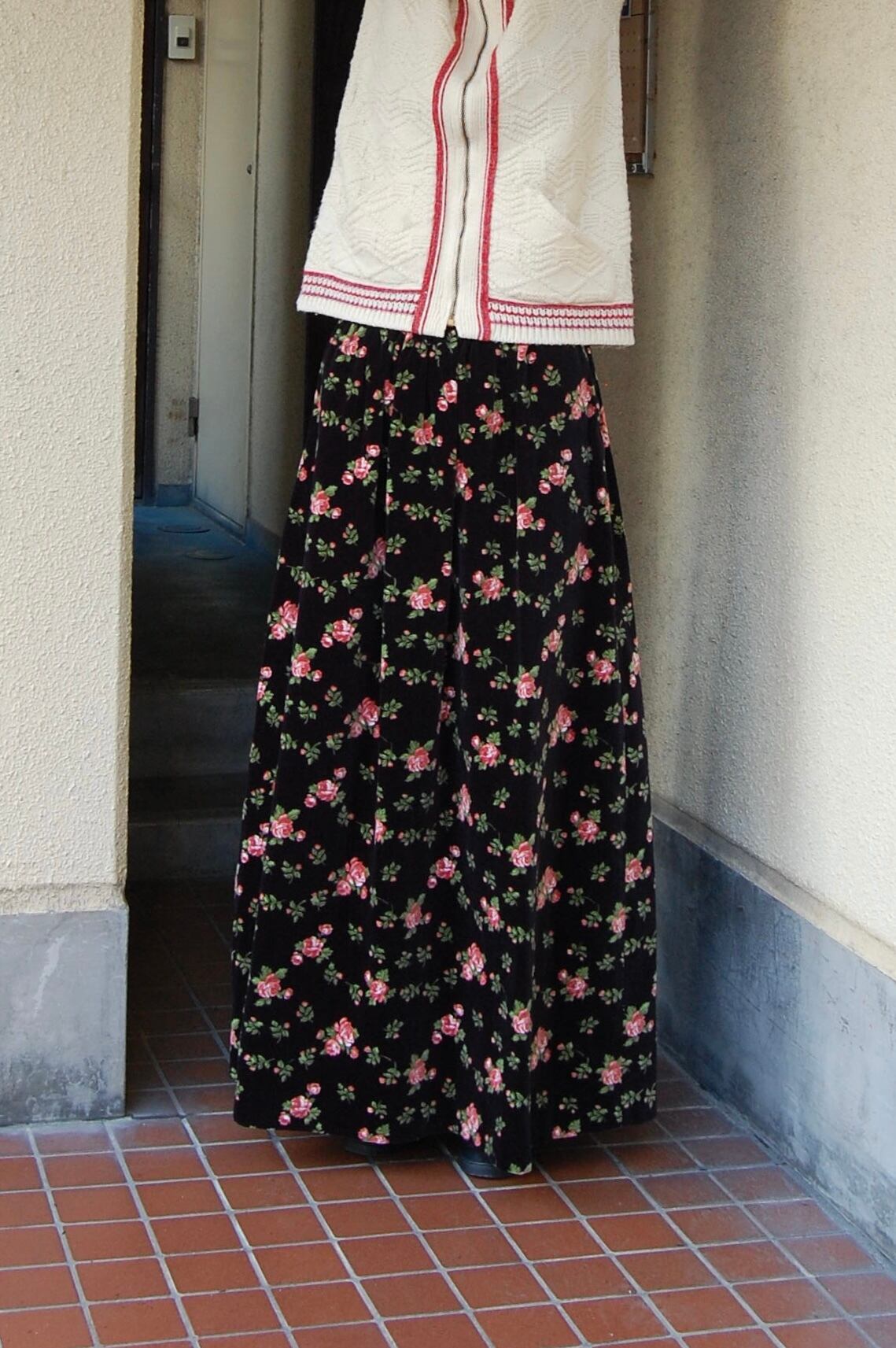1970'S FLORAL MOTIF VELOUR SKIRT