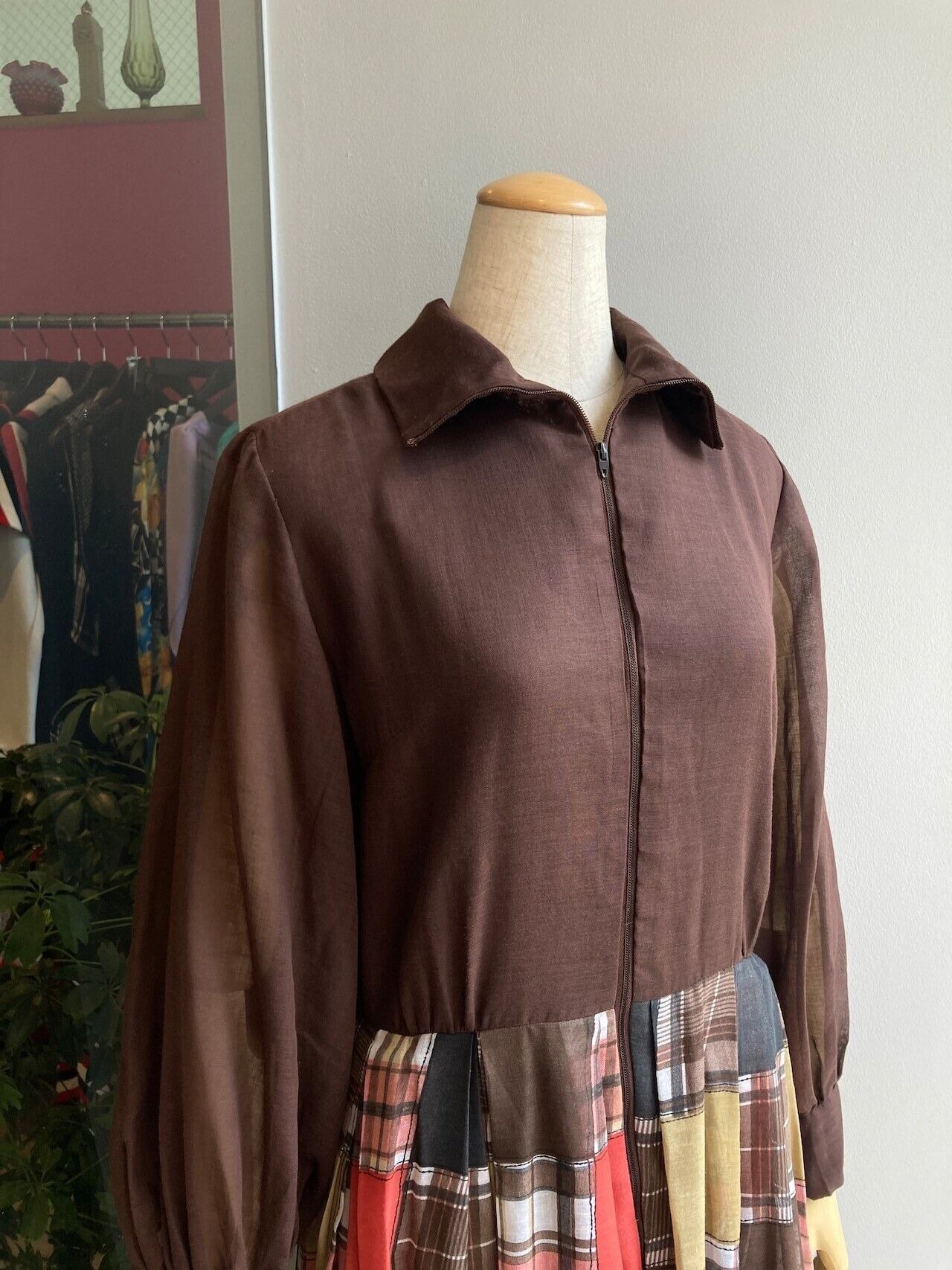 1970's checked desigh gauze maxi dress