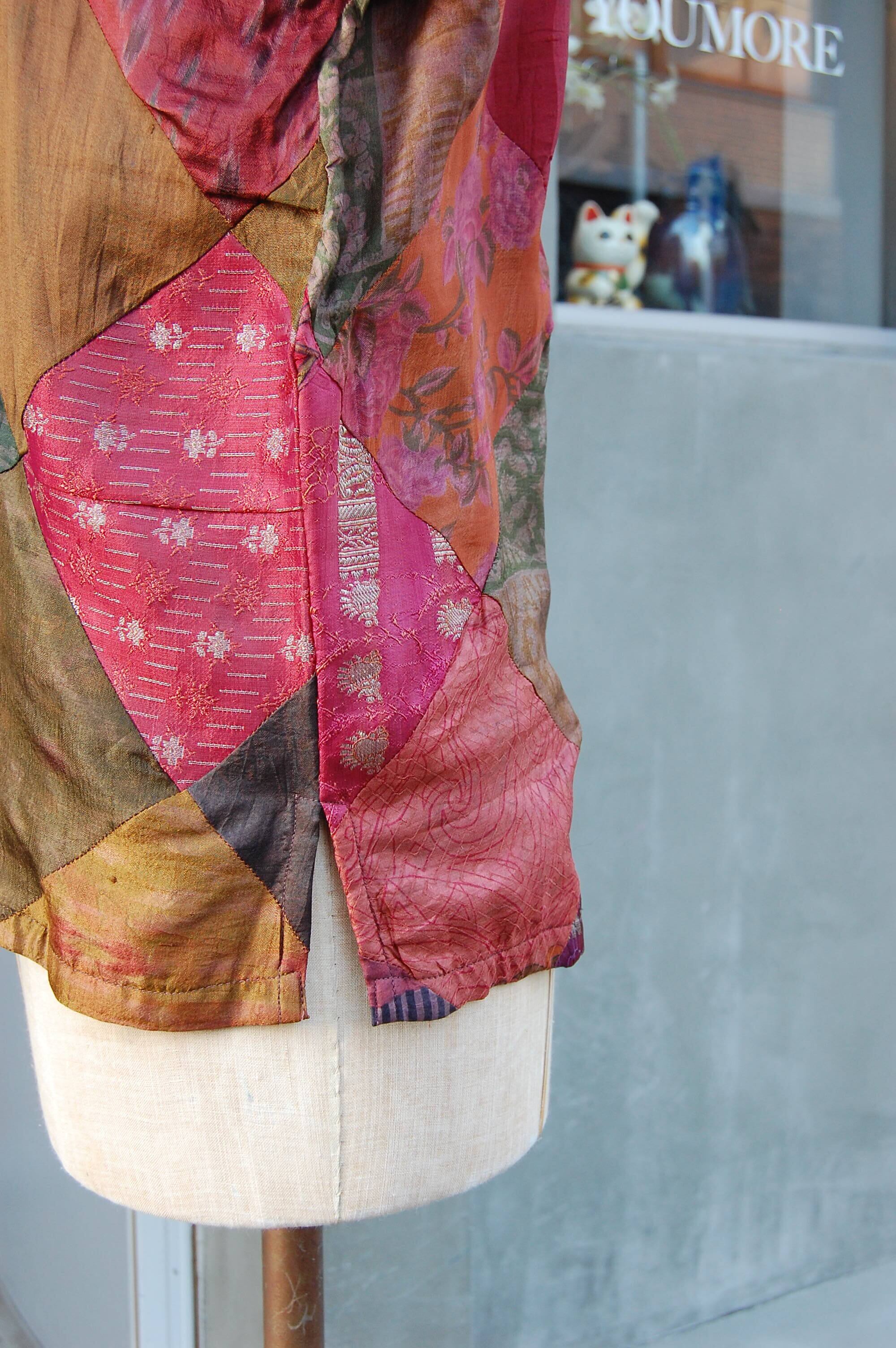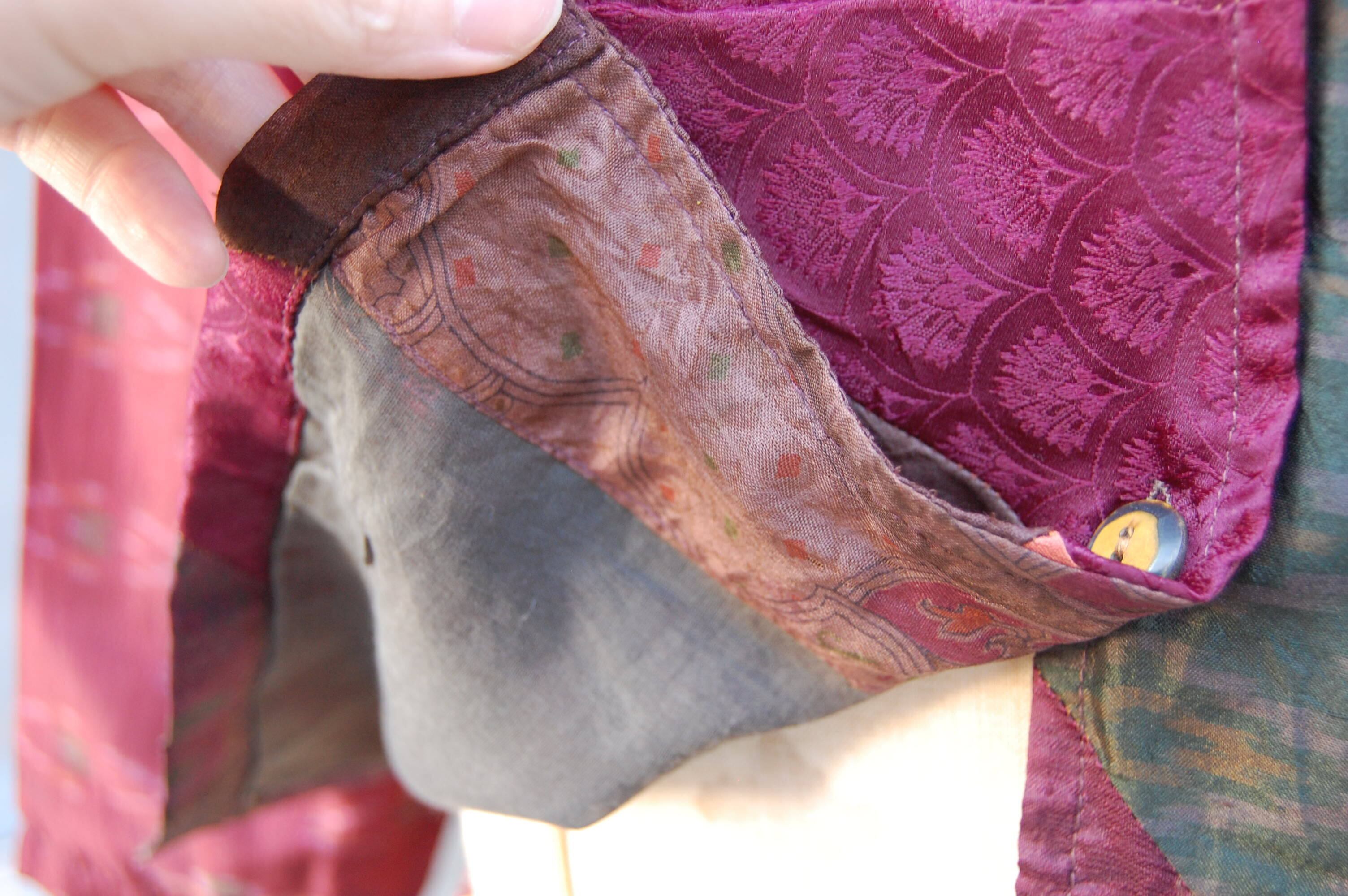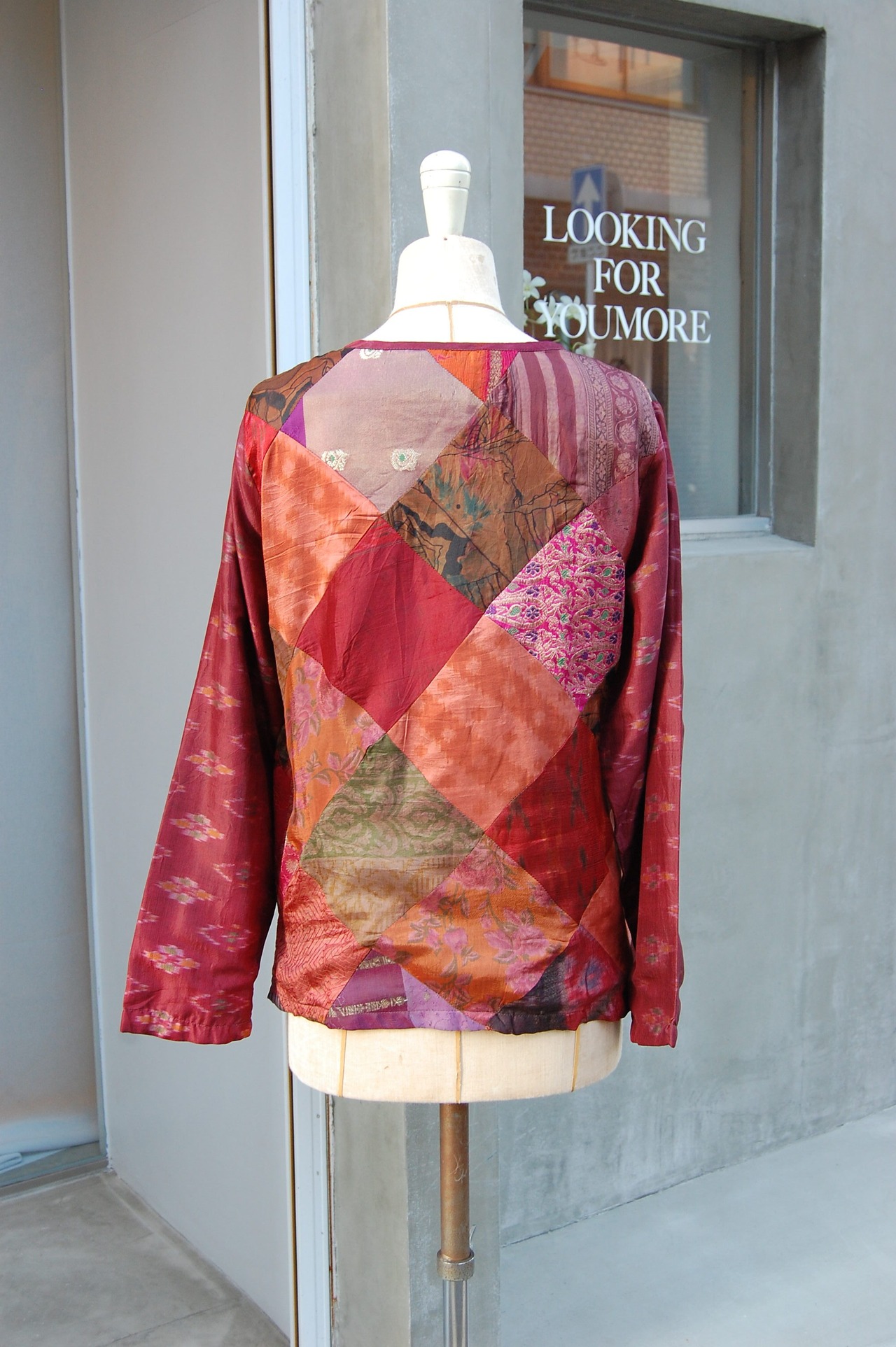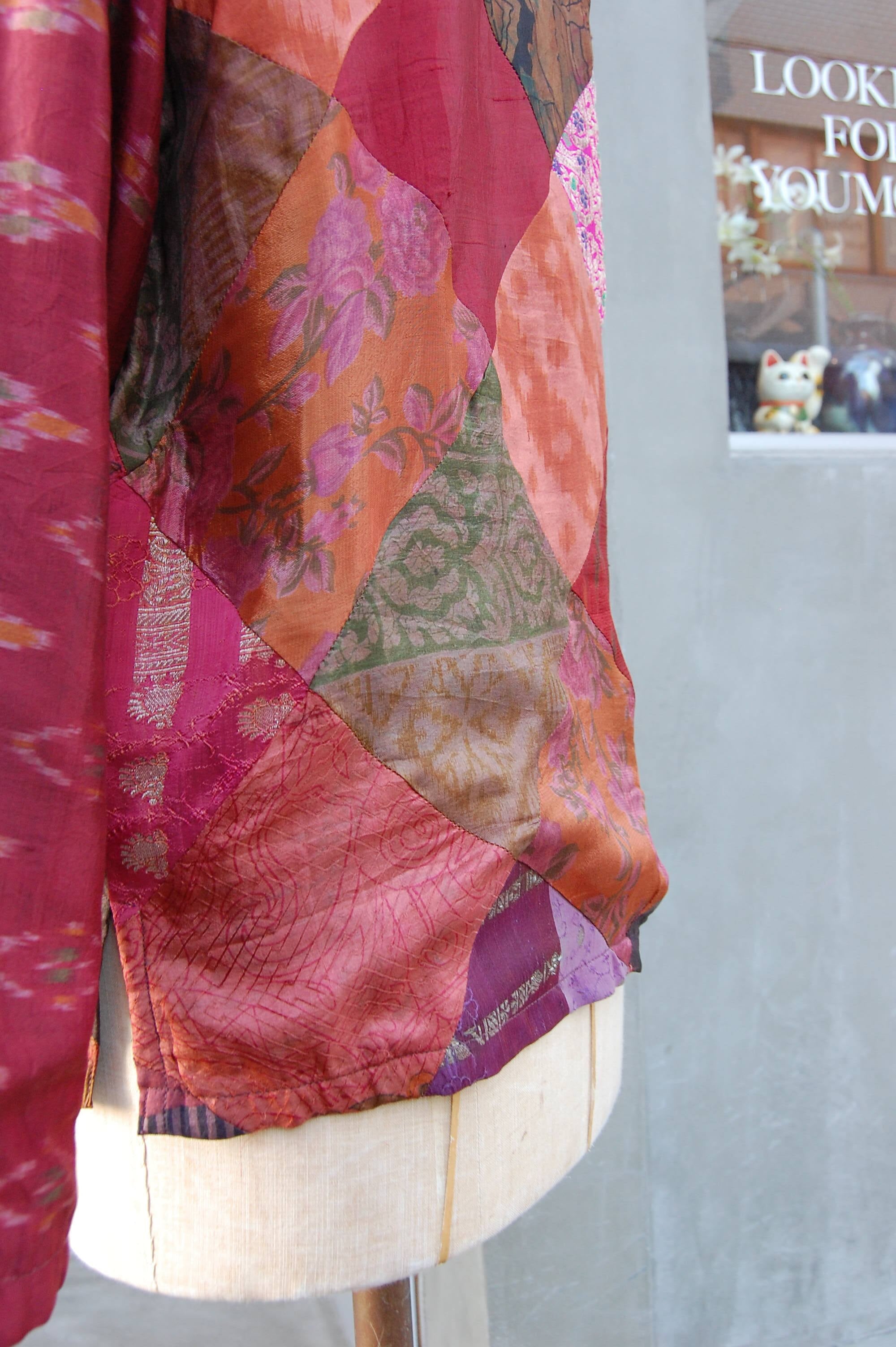 民族調のパターンの異なるファブリックがパッチワークされた、薄手のシルクジャケット
