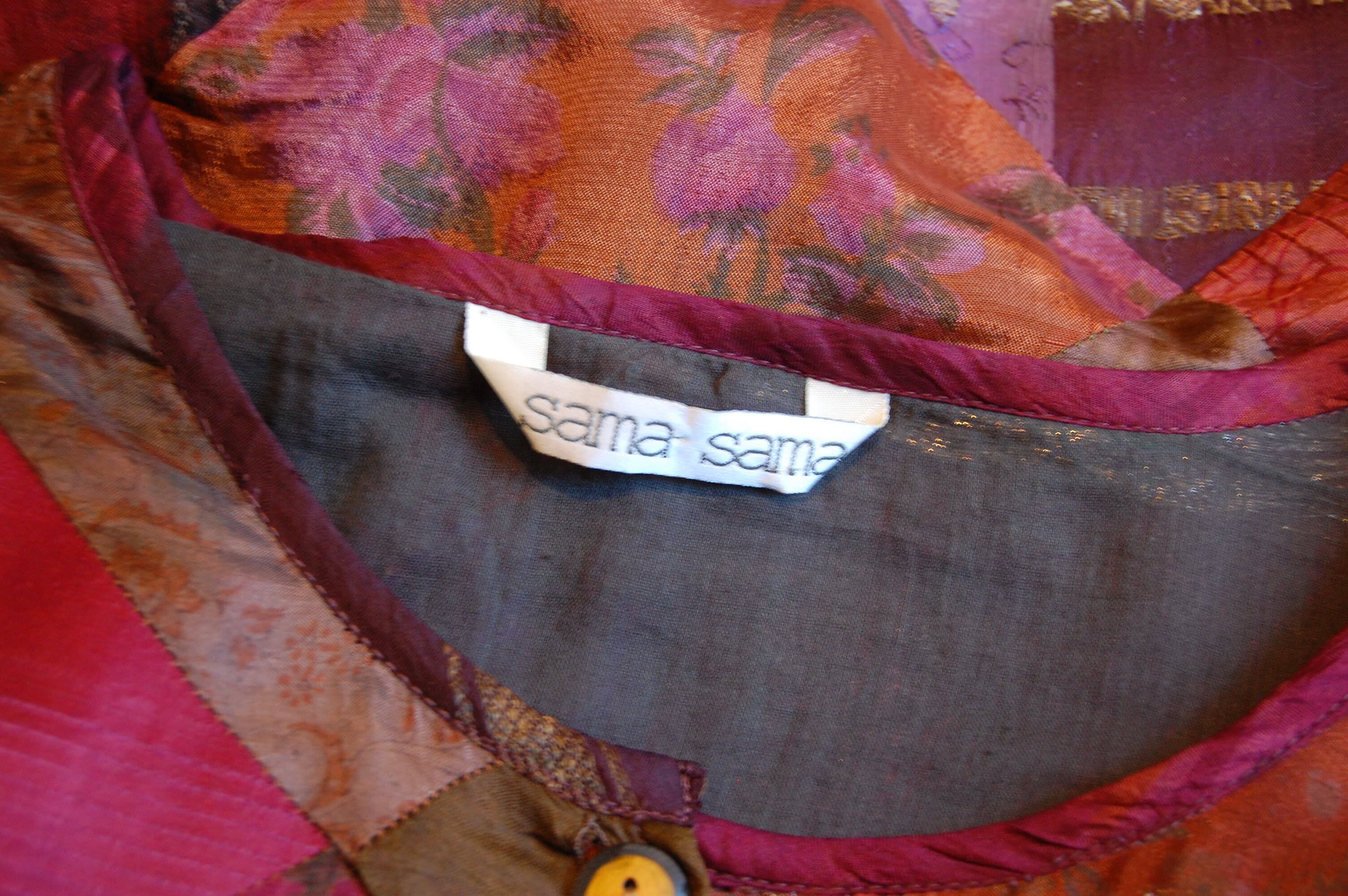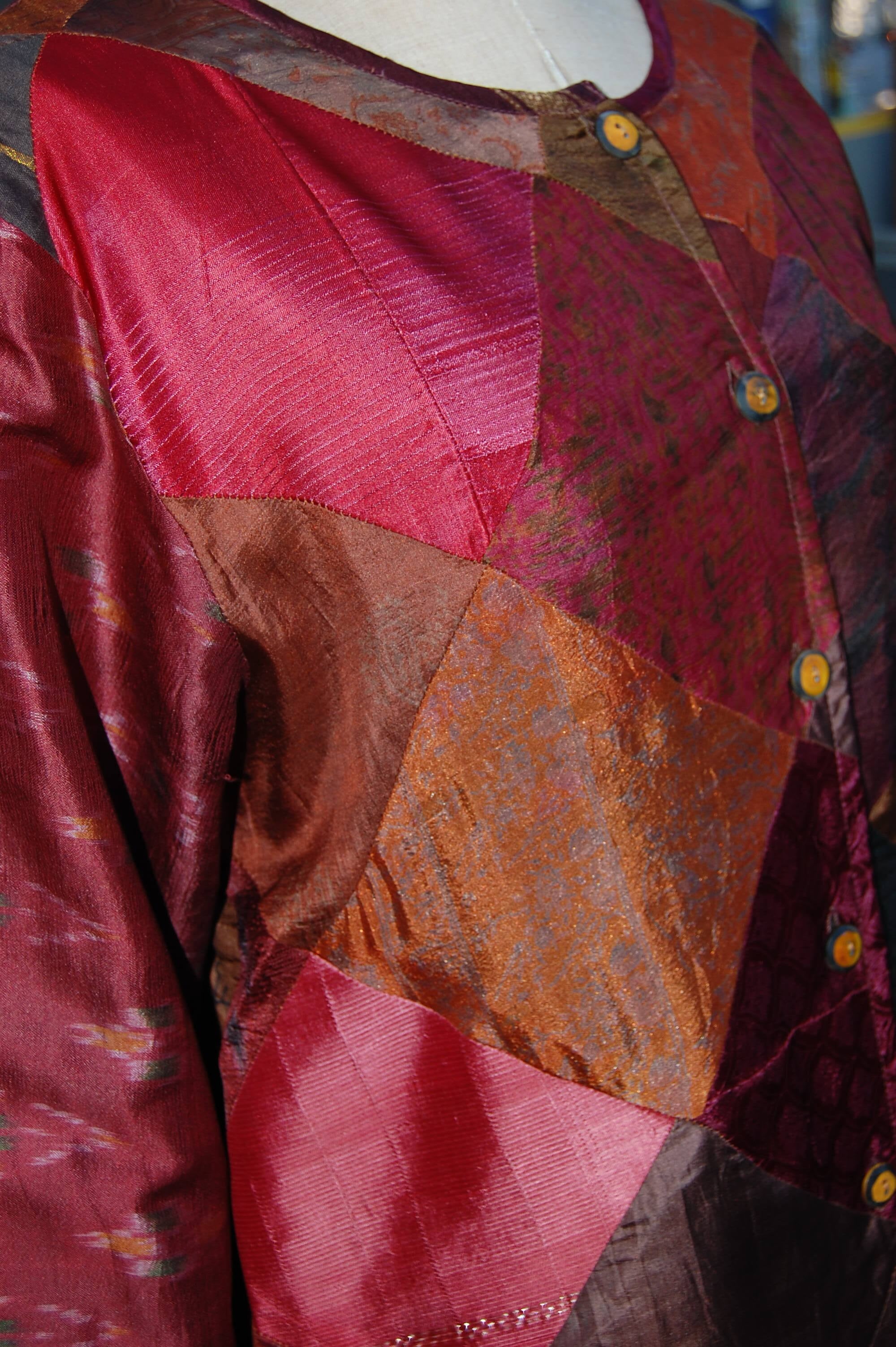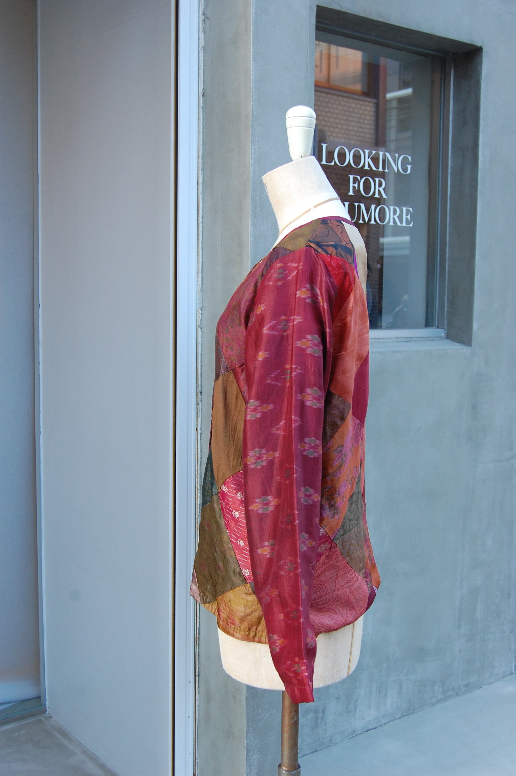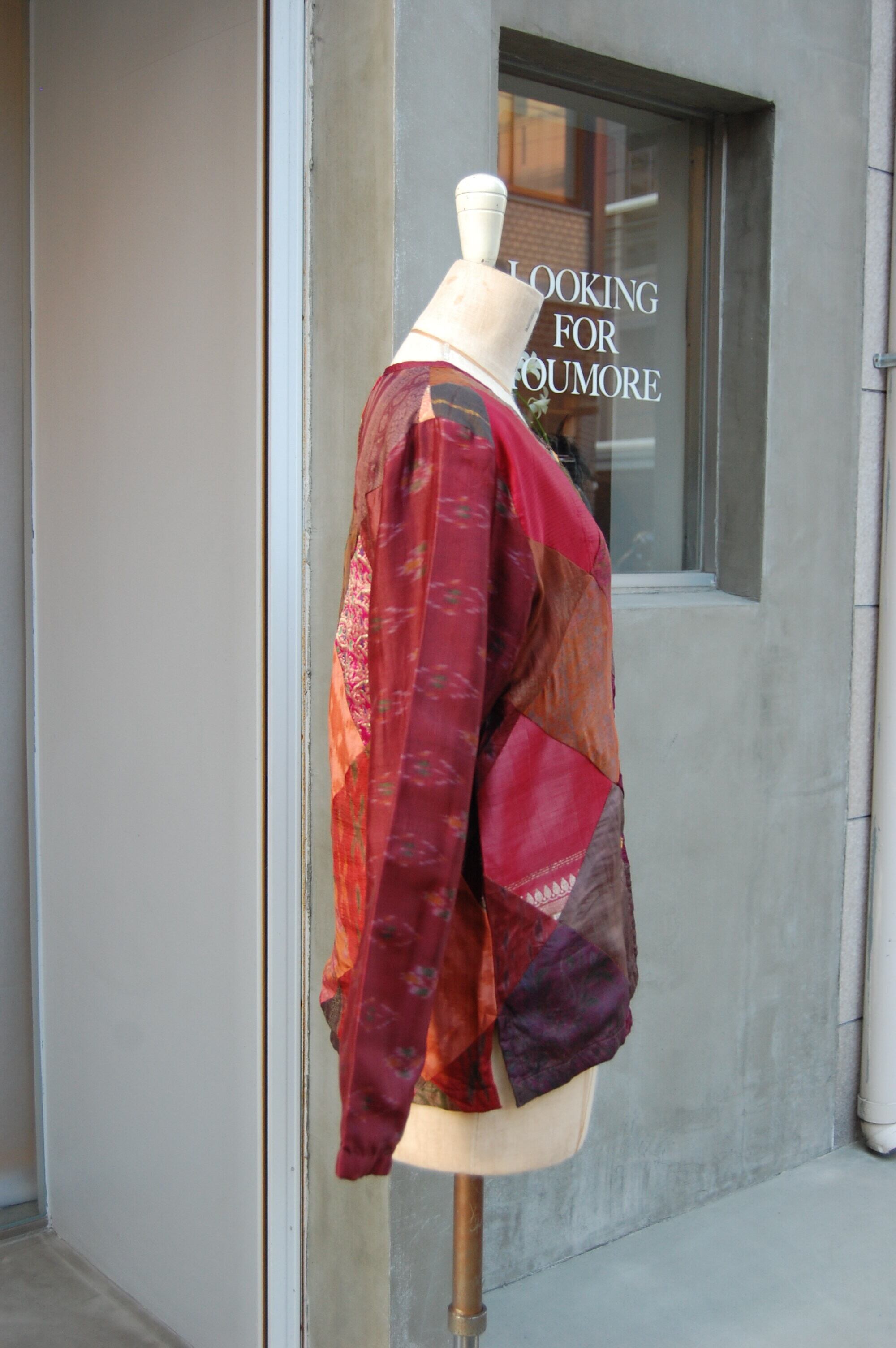 民族調のパターンの異なるファブリックがパッチワークされた、薄手のシルクジャケット