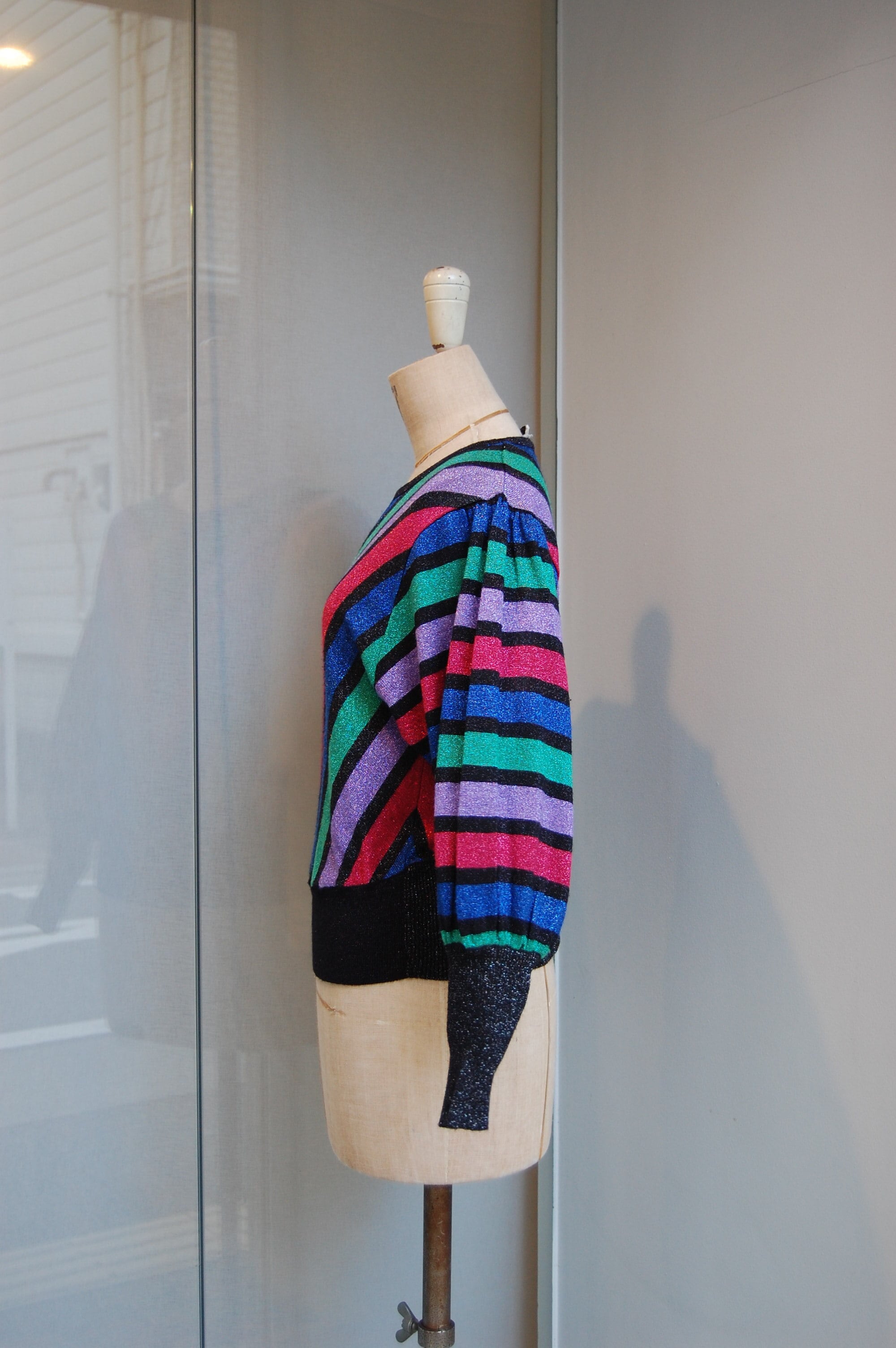 ブルー・パープル・グリーン・ピンクが絶妙なバランスで配され、動くたびにさりげなくきらめきます✴︎