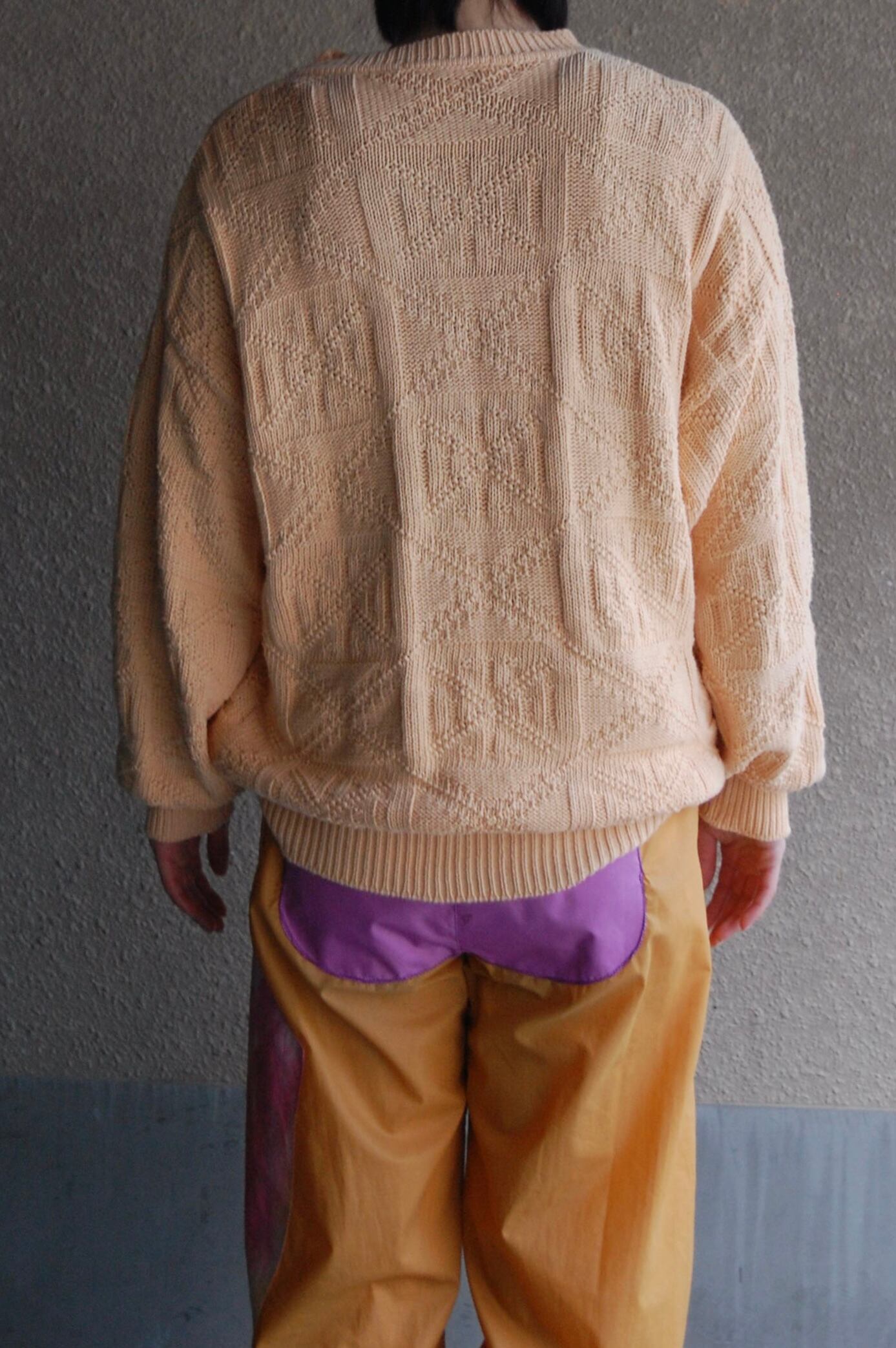 1980's italy lemon yellow 3d cotton knit sweater