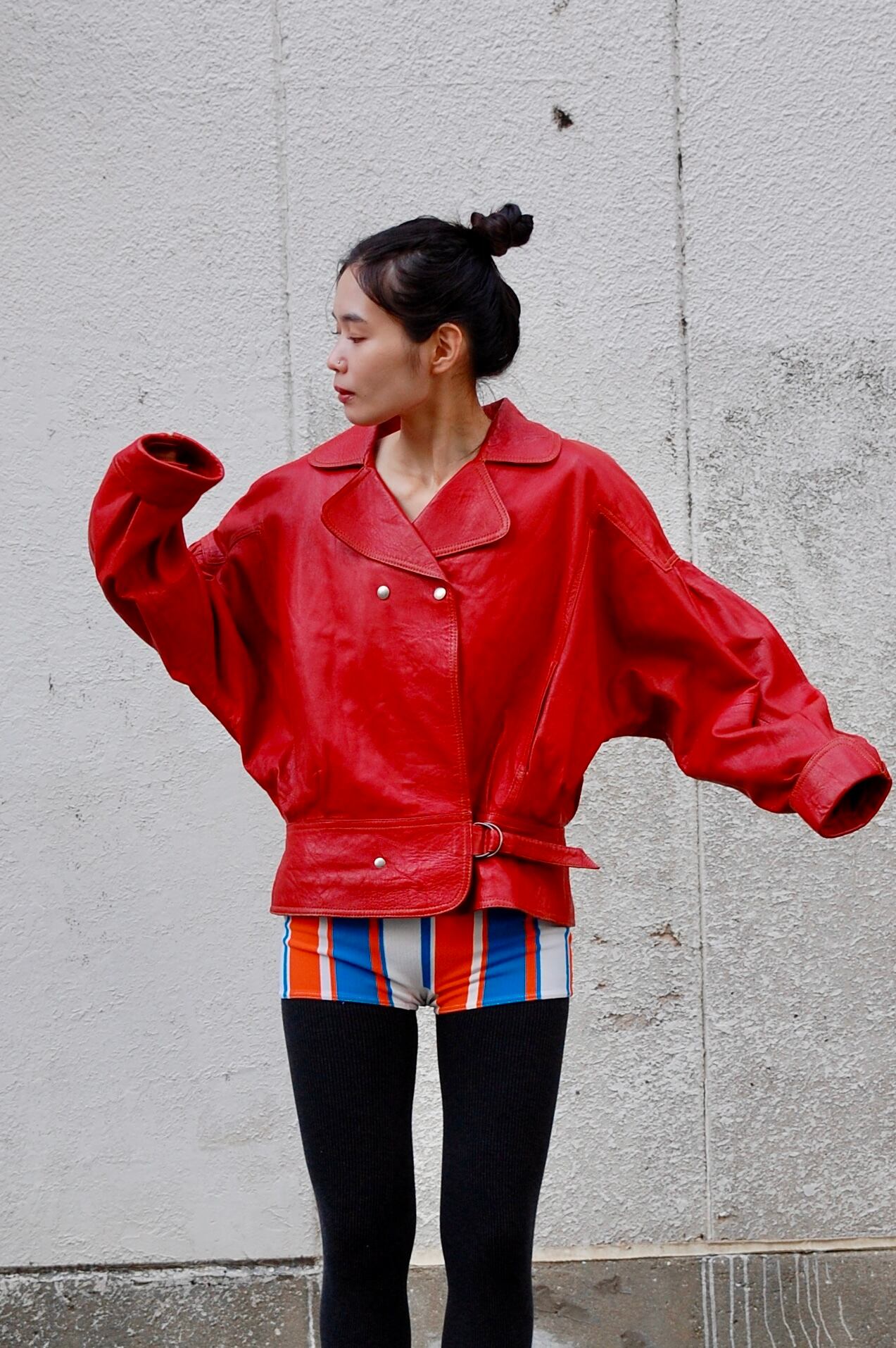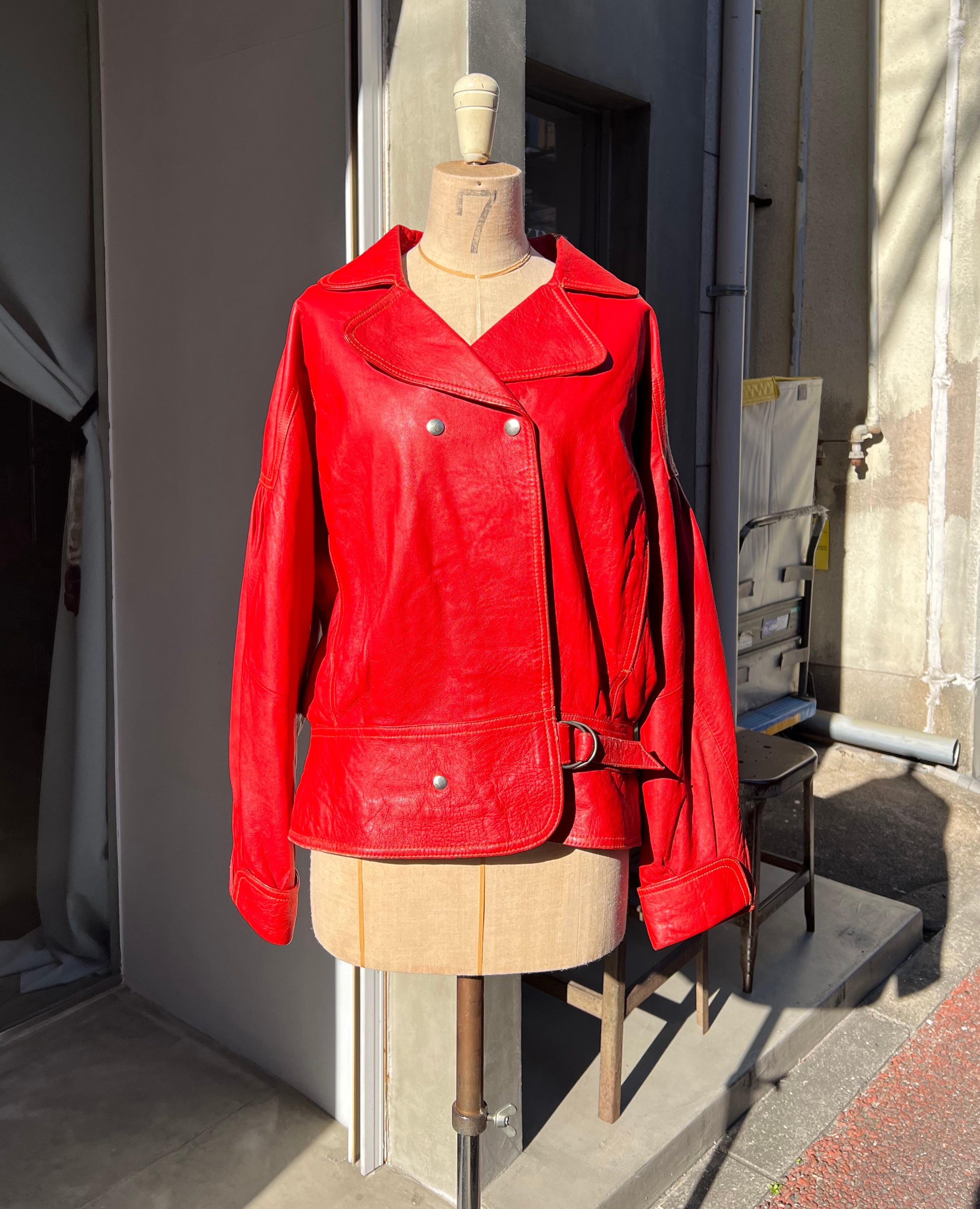 1980's red leather oversized jacket