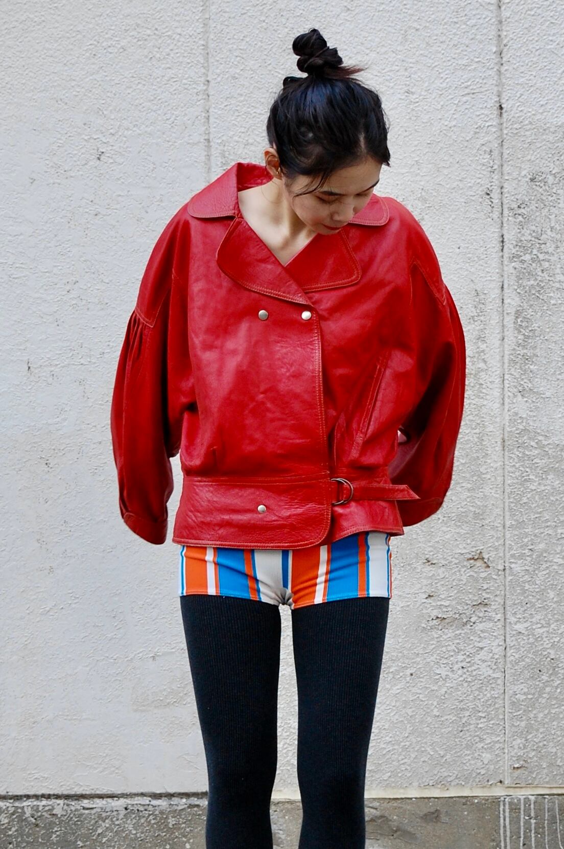 真っ赤な配色に惹かれるレザージャケット