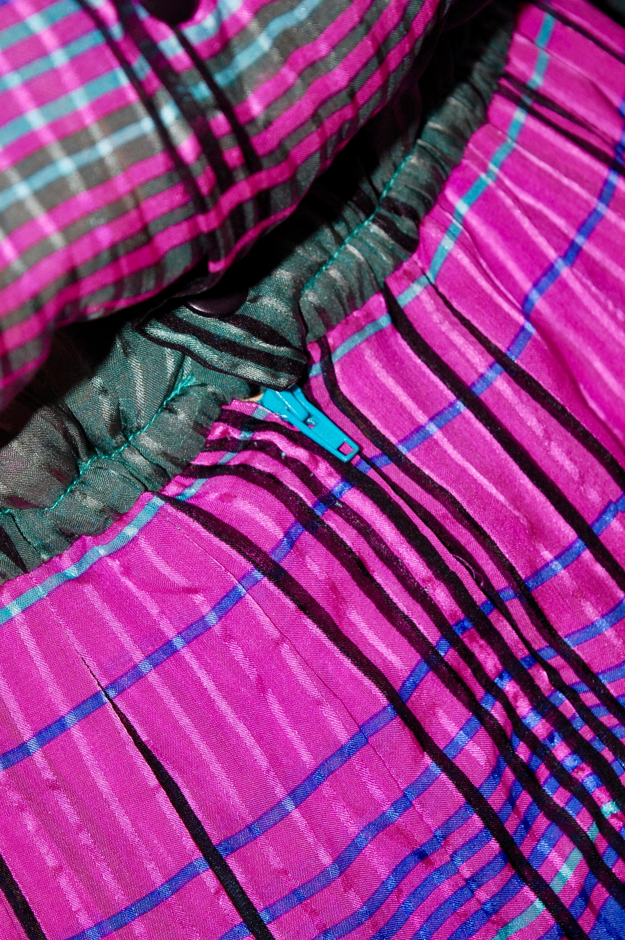 軽やかに揺れるシルク生地に、鮮やかなチェックの色彩が重なり合い、纏うだけで存在感を放つ一着⭐︎⭐︎