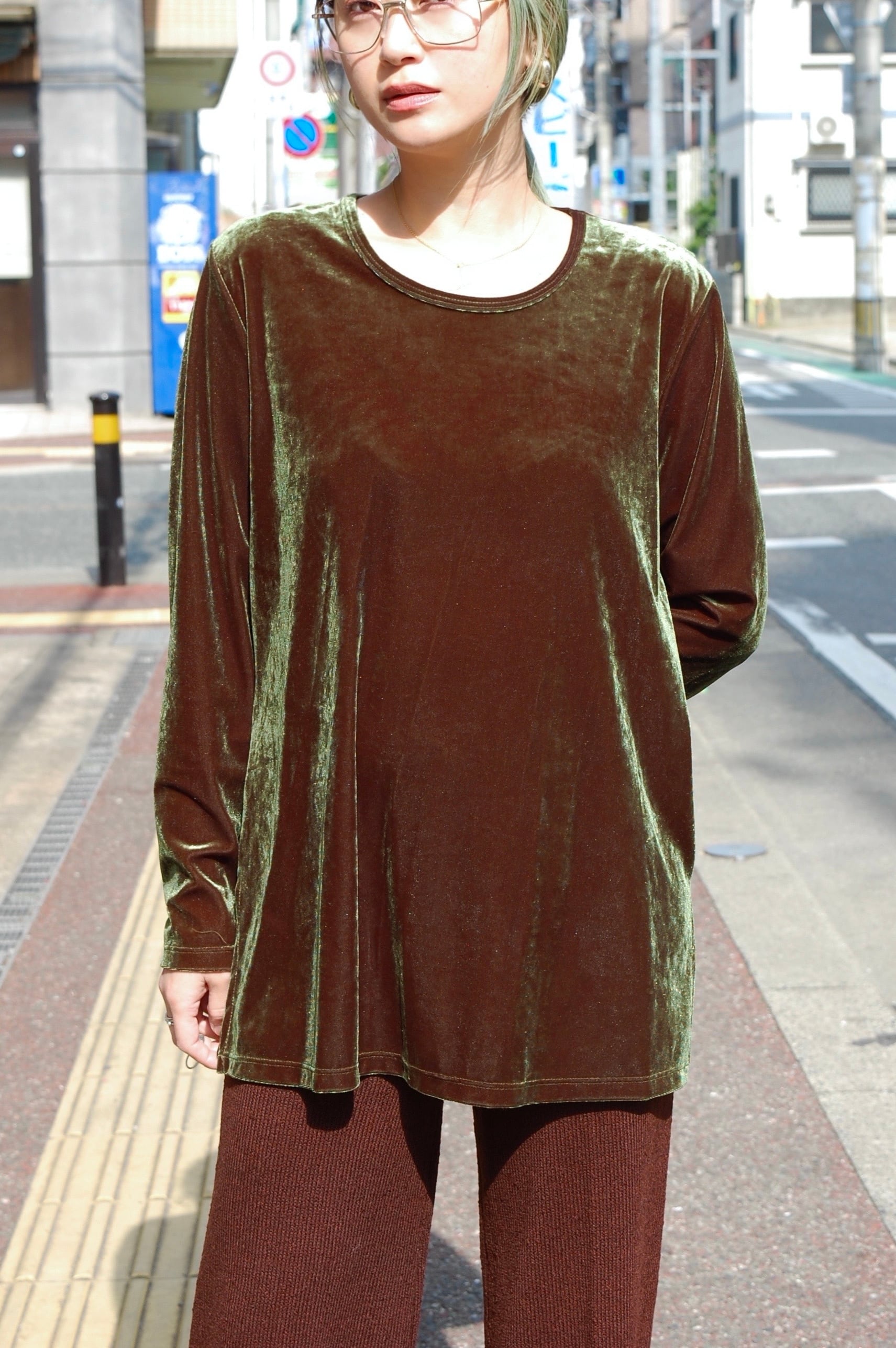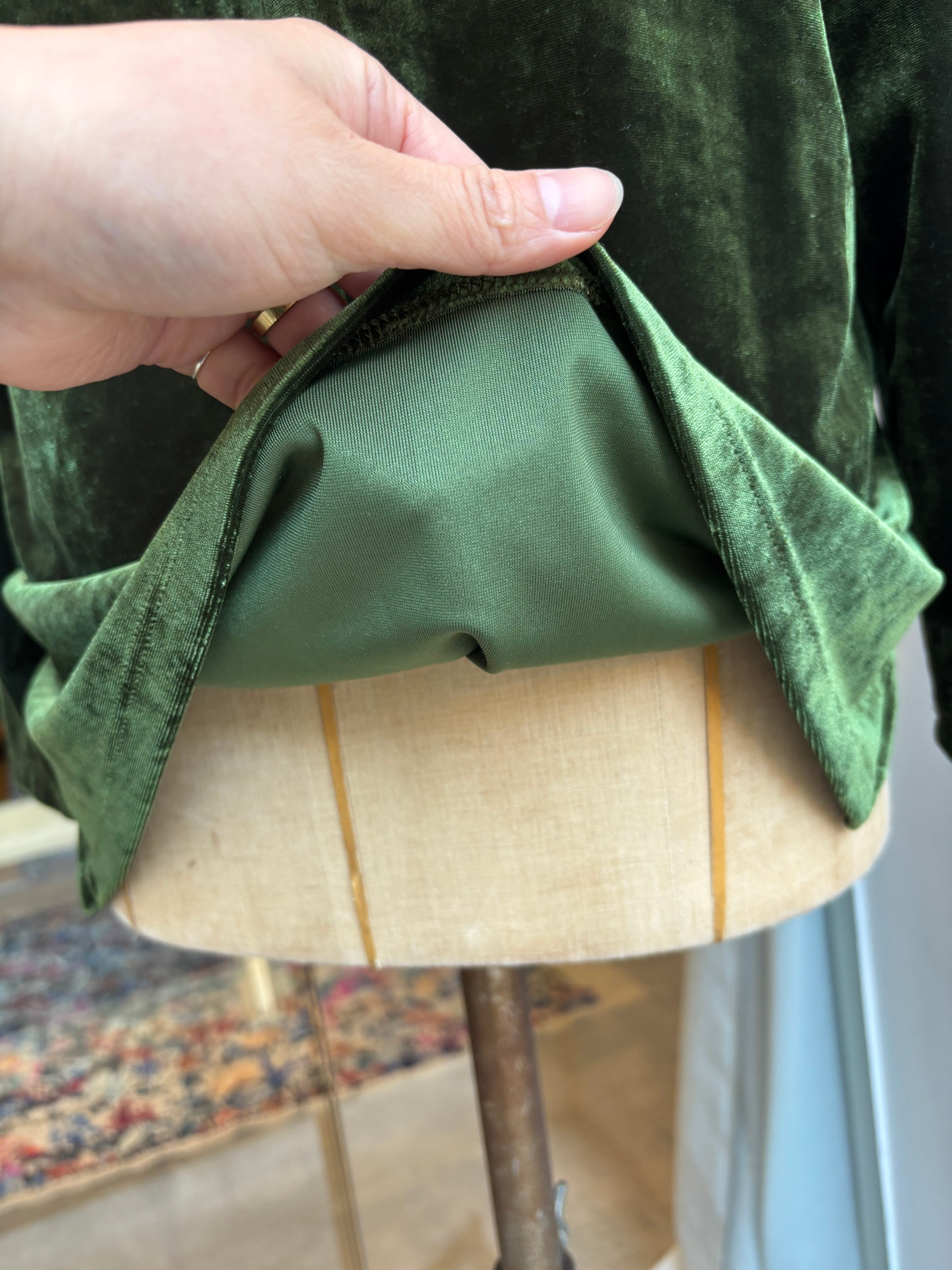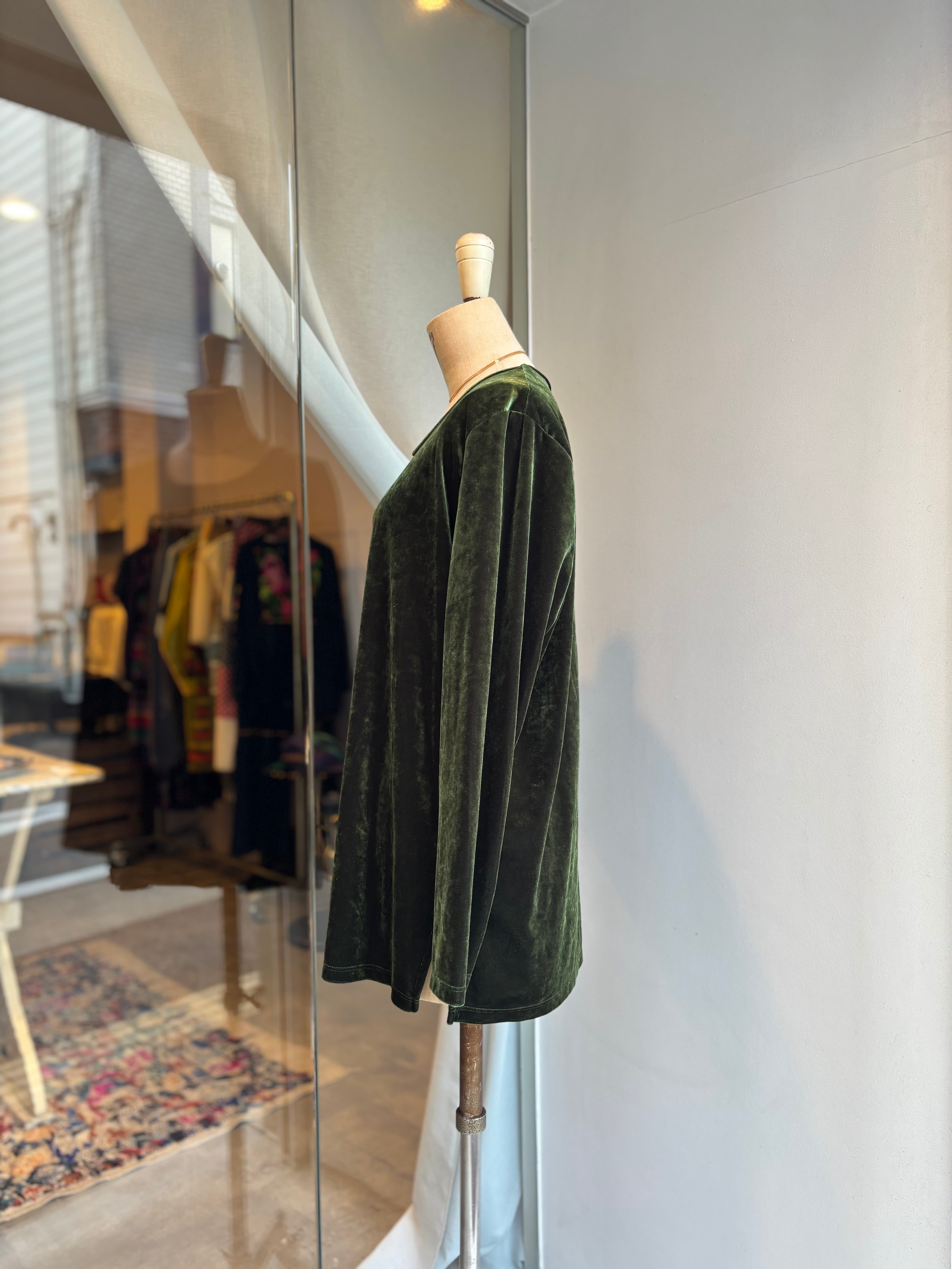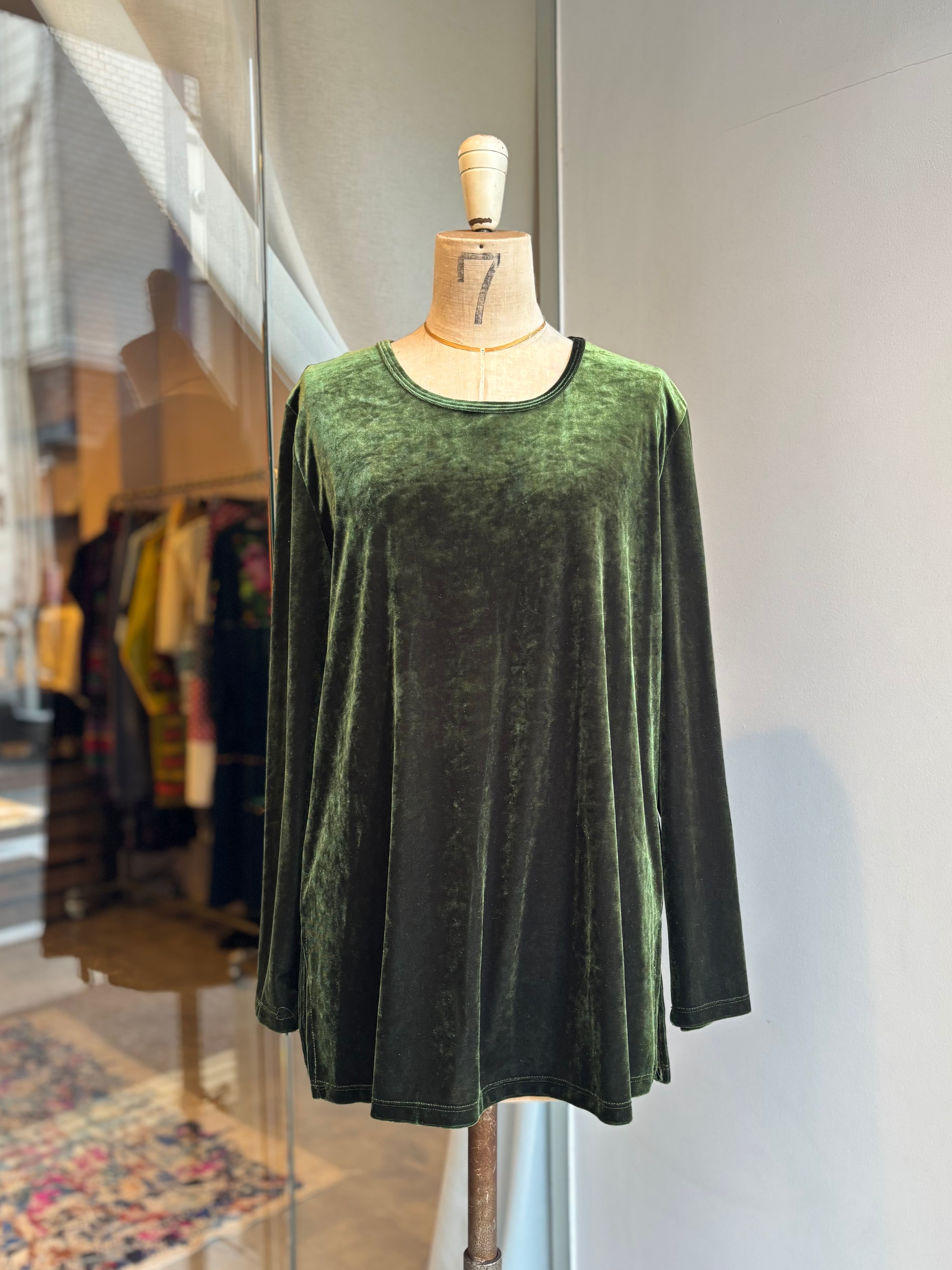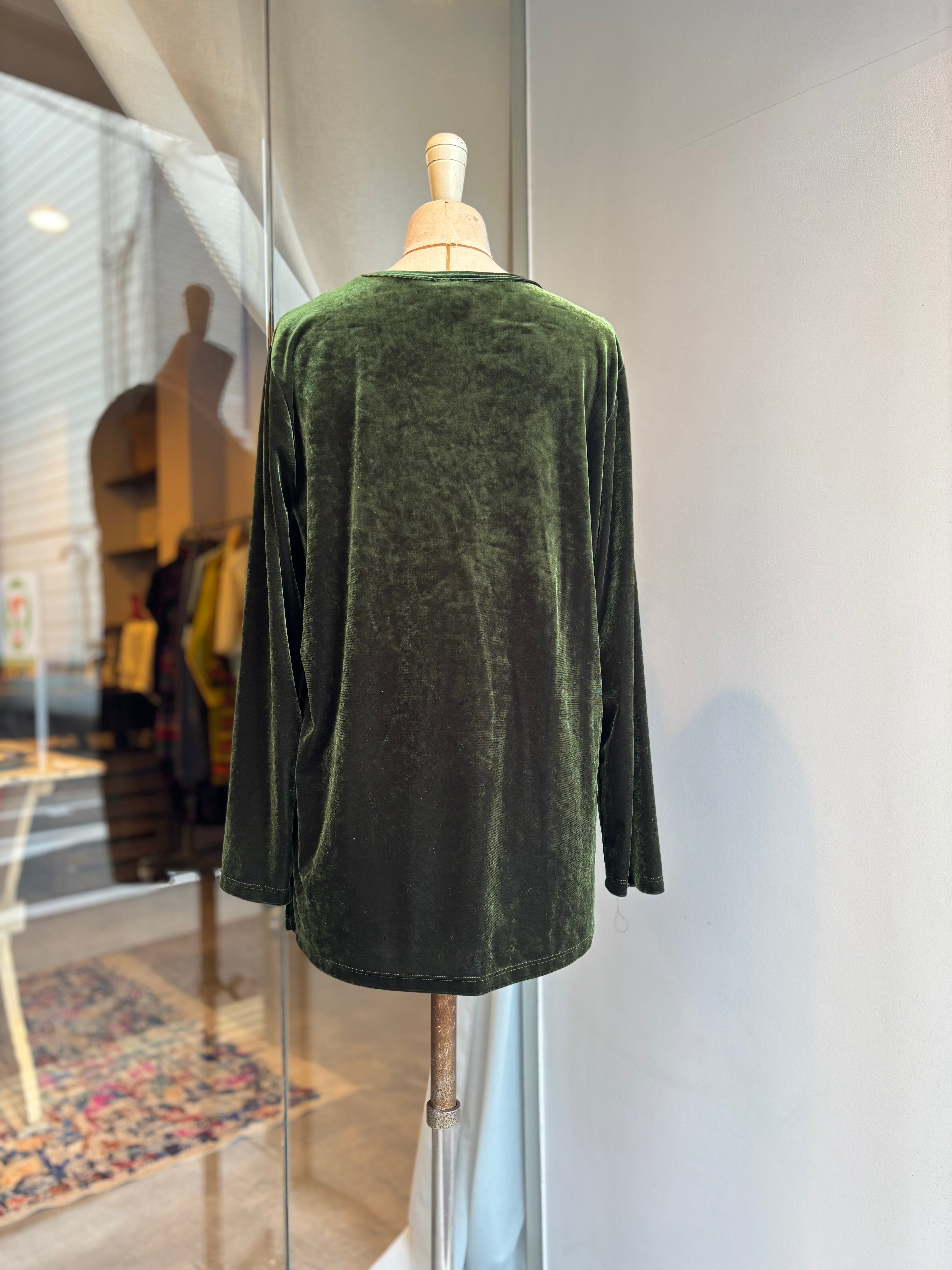 1990's usa dark green velour l/s tops
