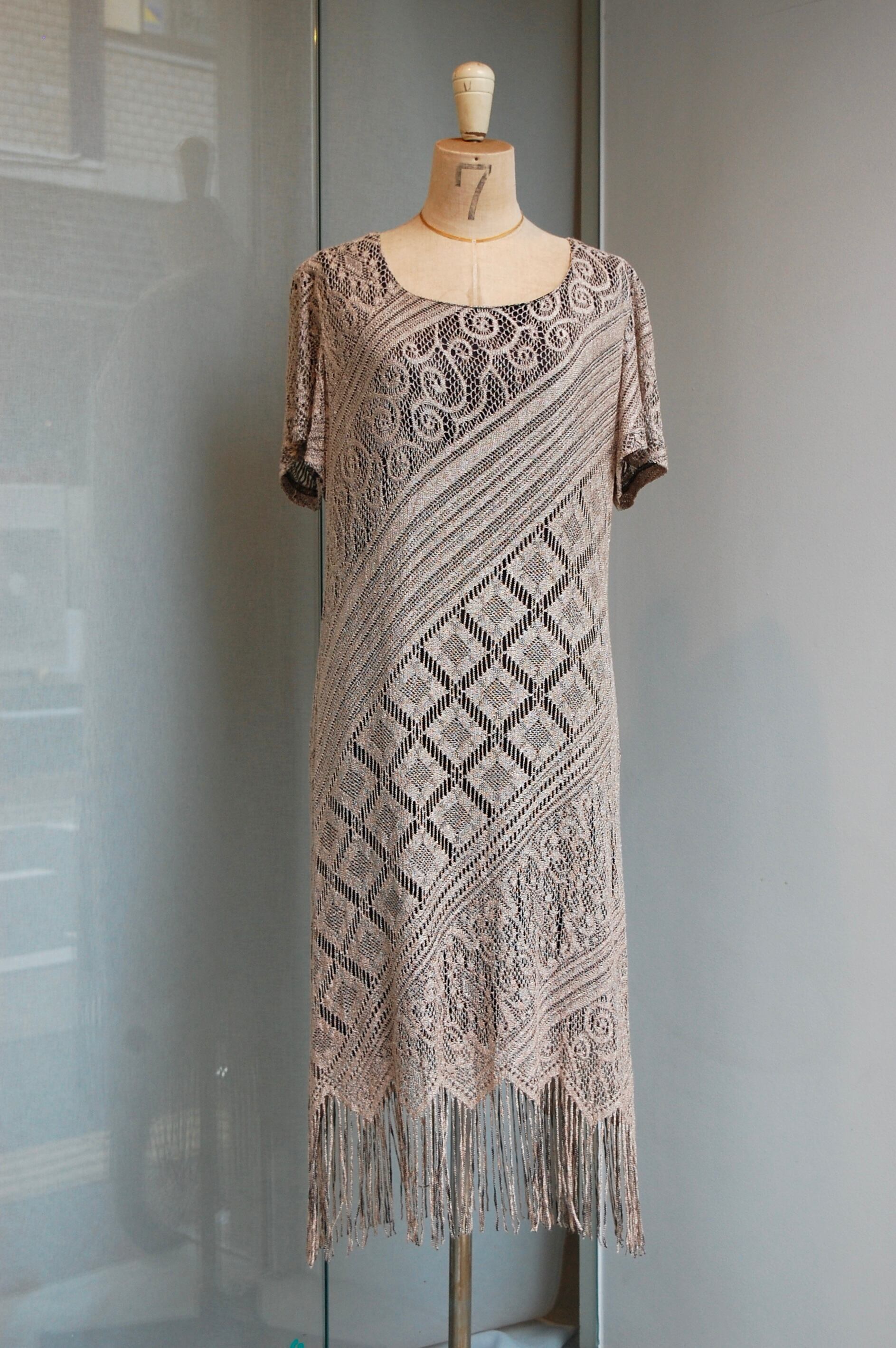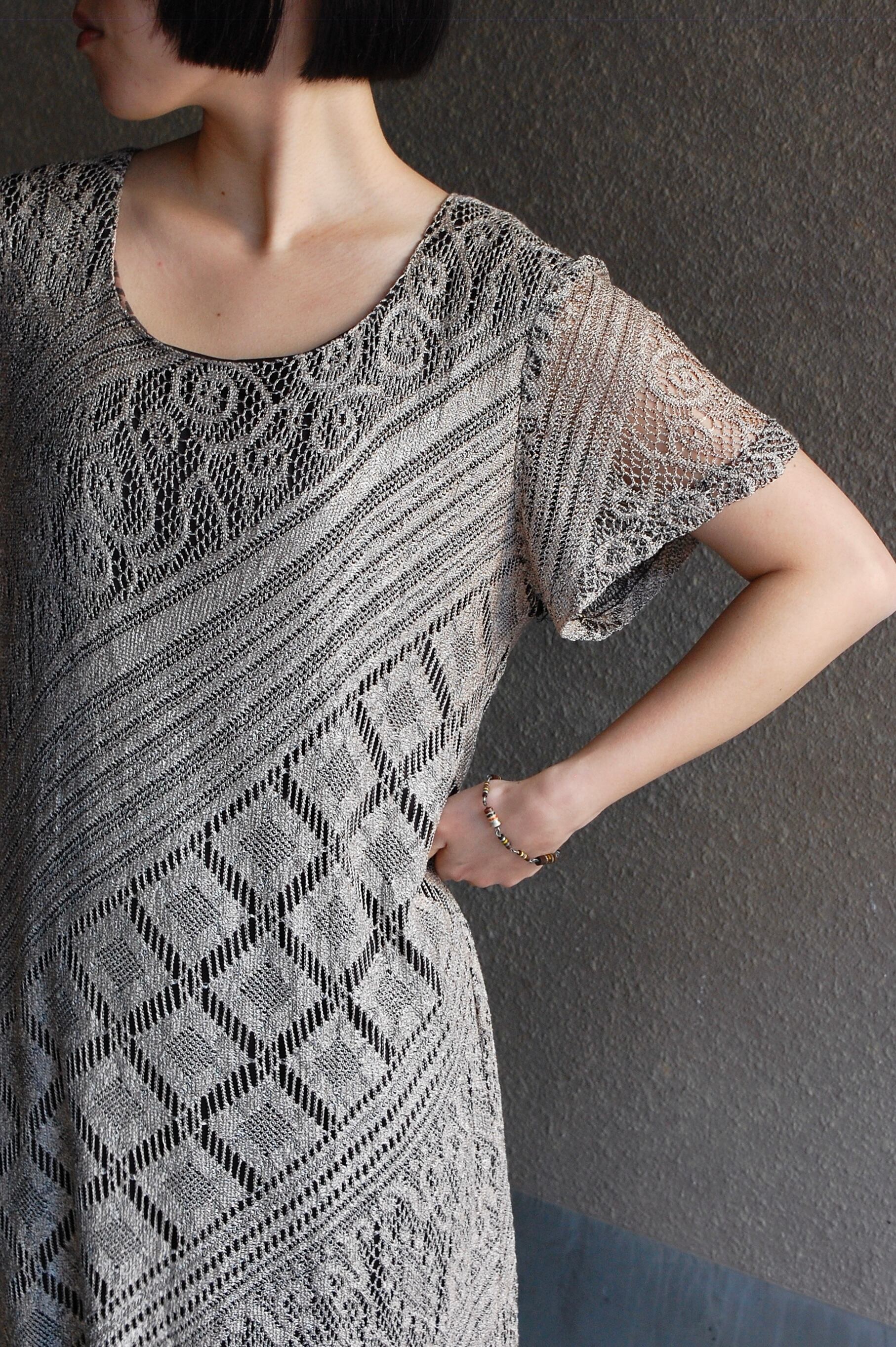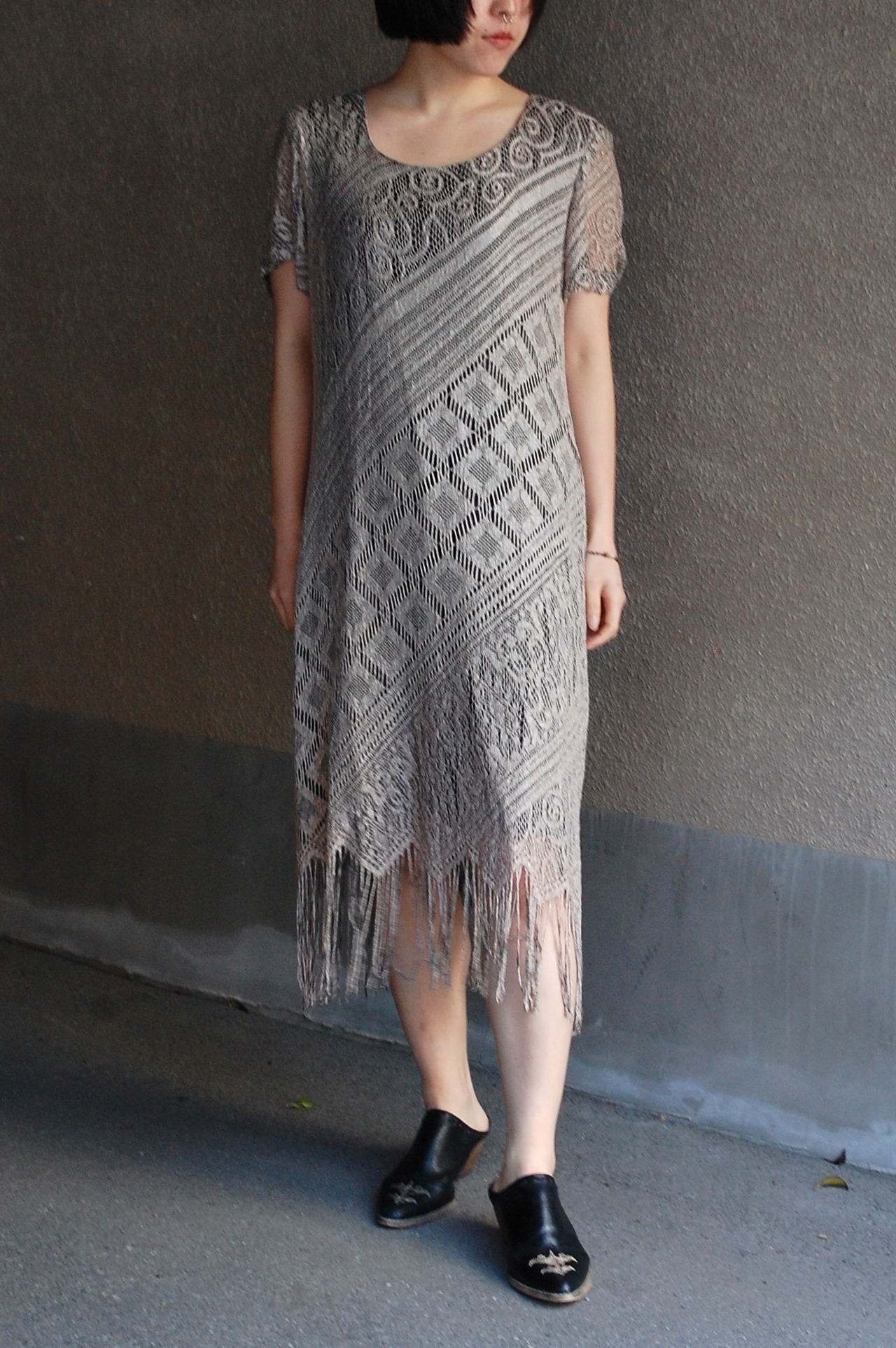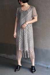 1980 - 90's usa beautiful lace fringe design s/s dress