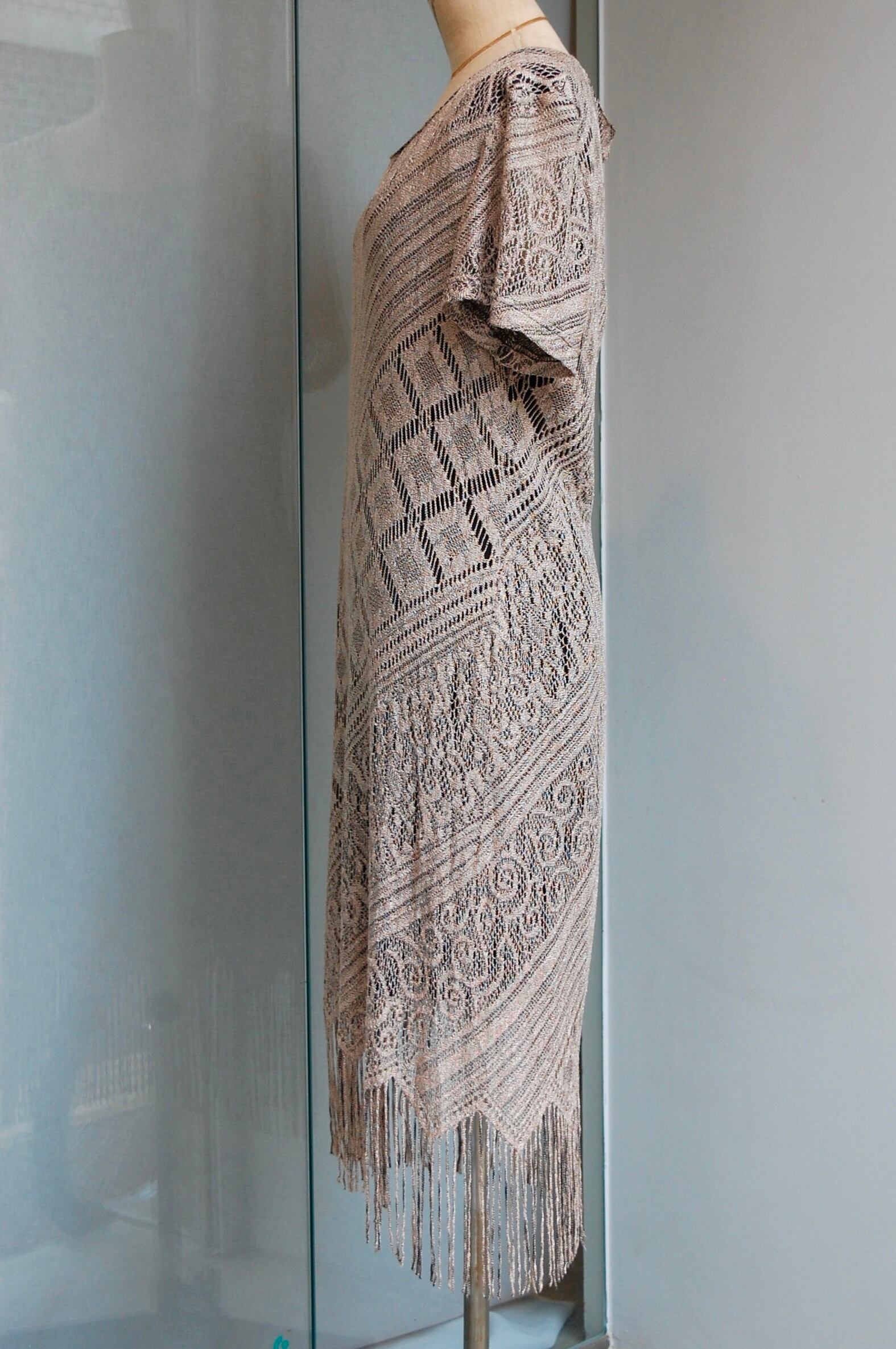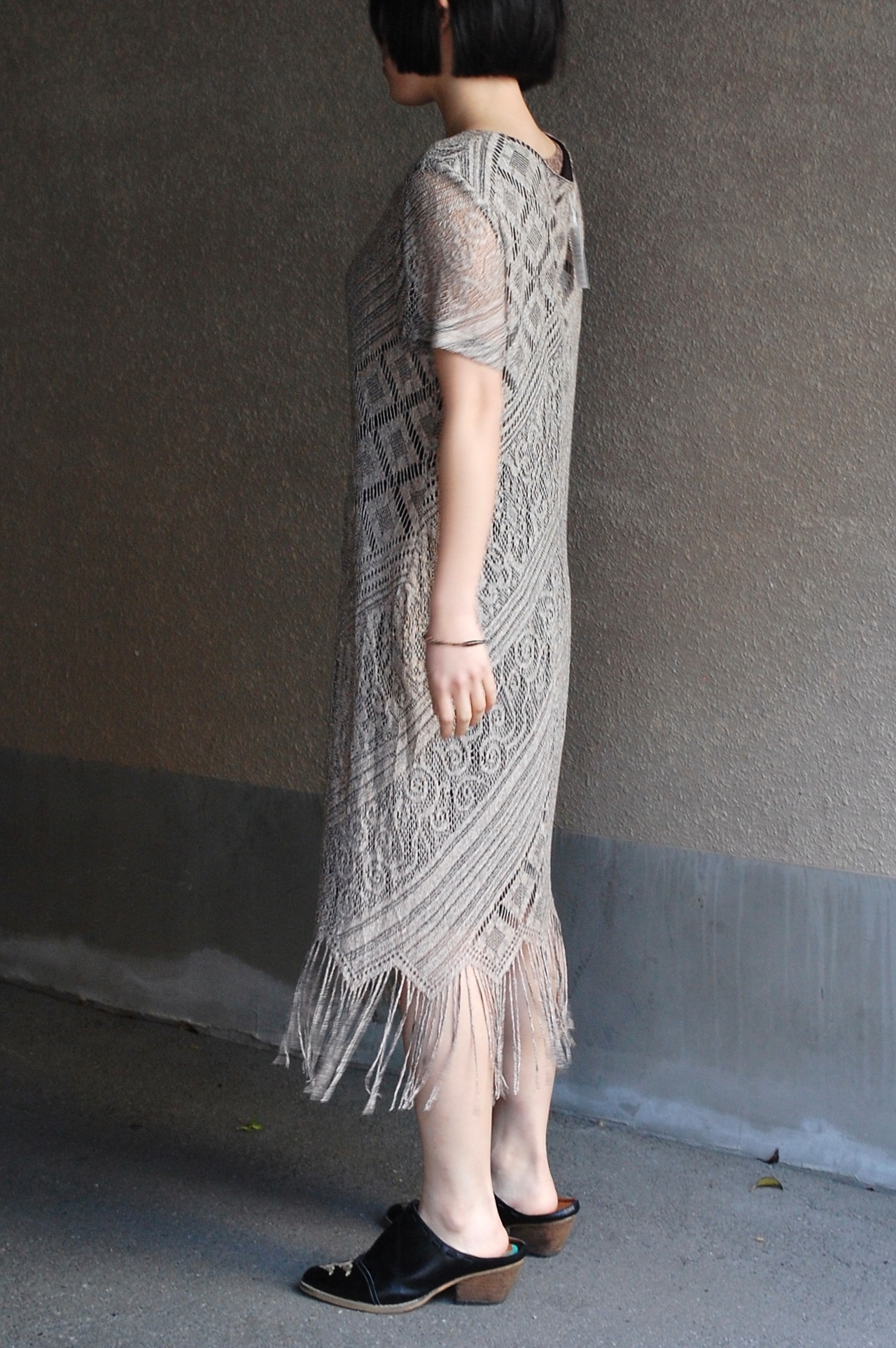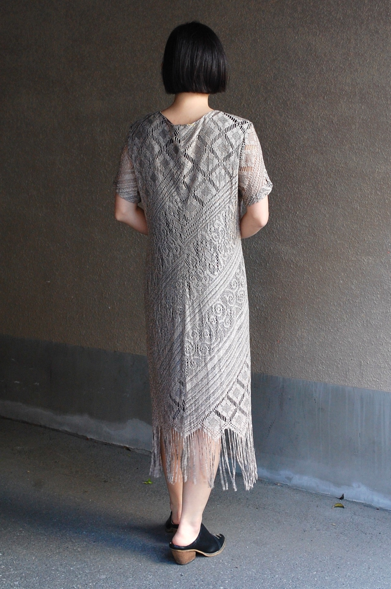 1980 - 90's usa beautiful lace fringe design s/s dress