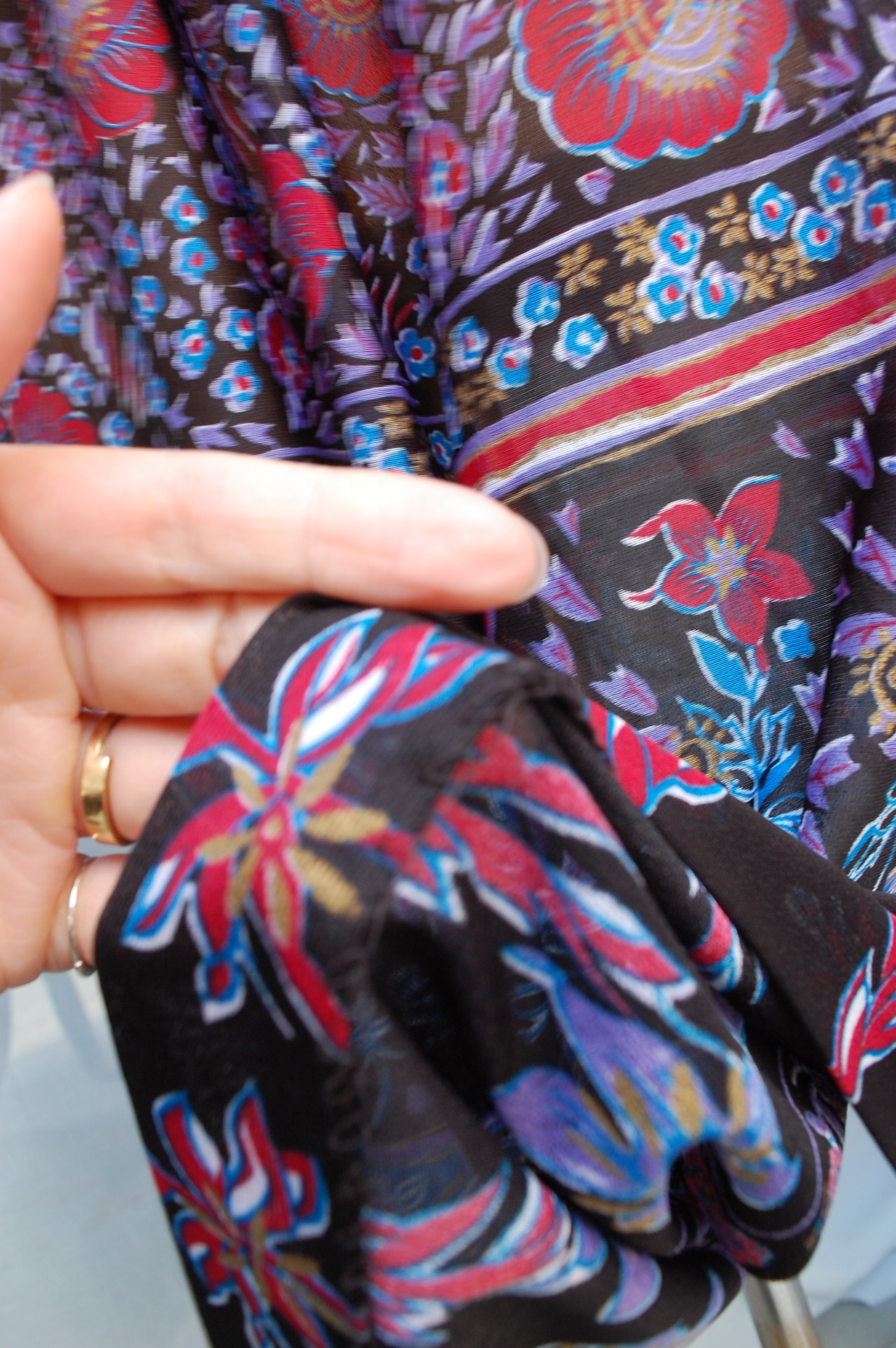 繊細なポリエステルの透け感と、深みのあるフラワーパターンが重なり合い、動くたびに軽やかな表情を見せてくれます☺︎