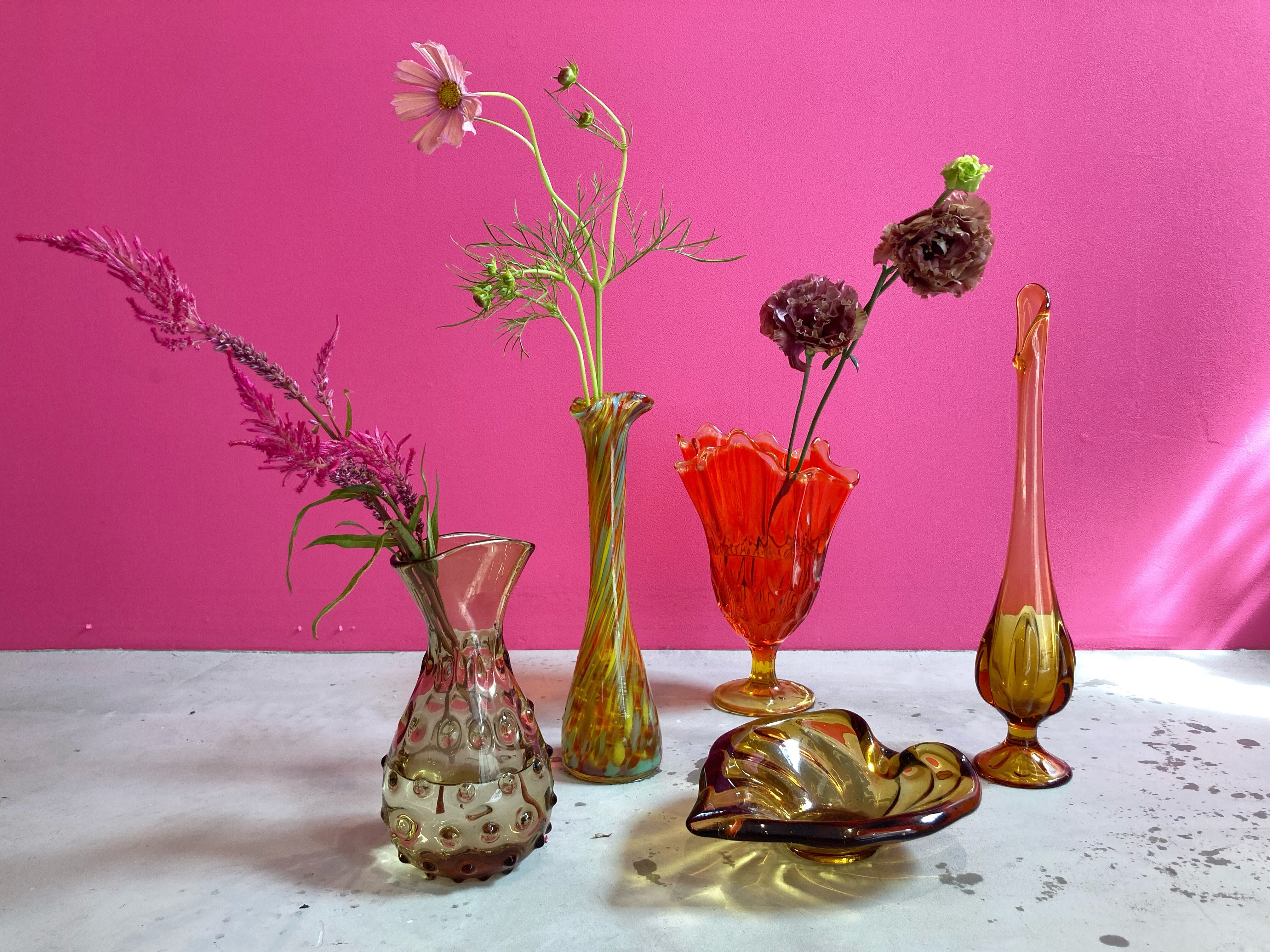 VINTAGE GLASS VASE( ヴィンテージフラワーベース ガラス 花瓶)