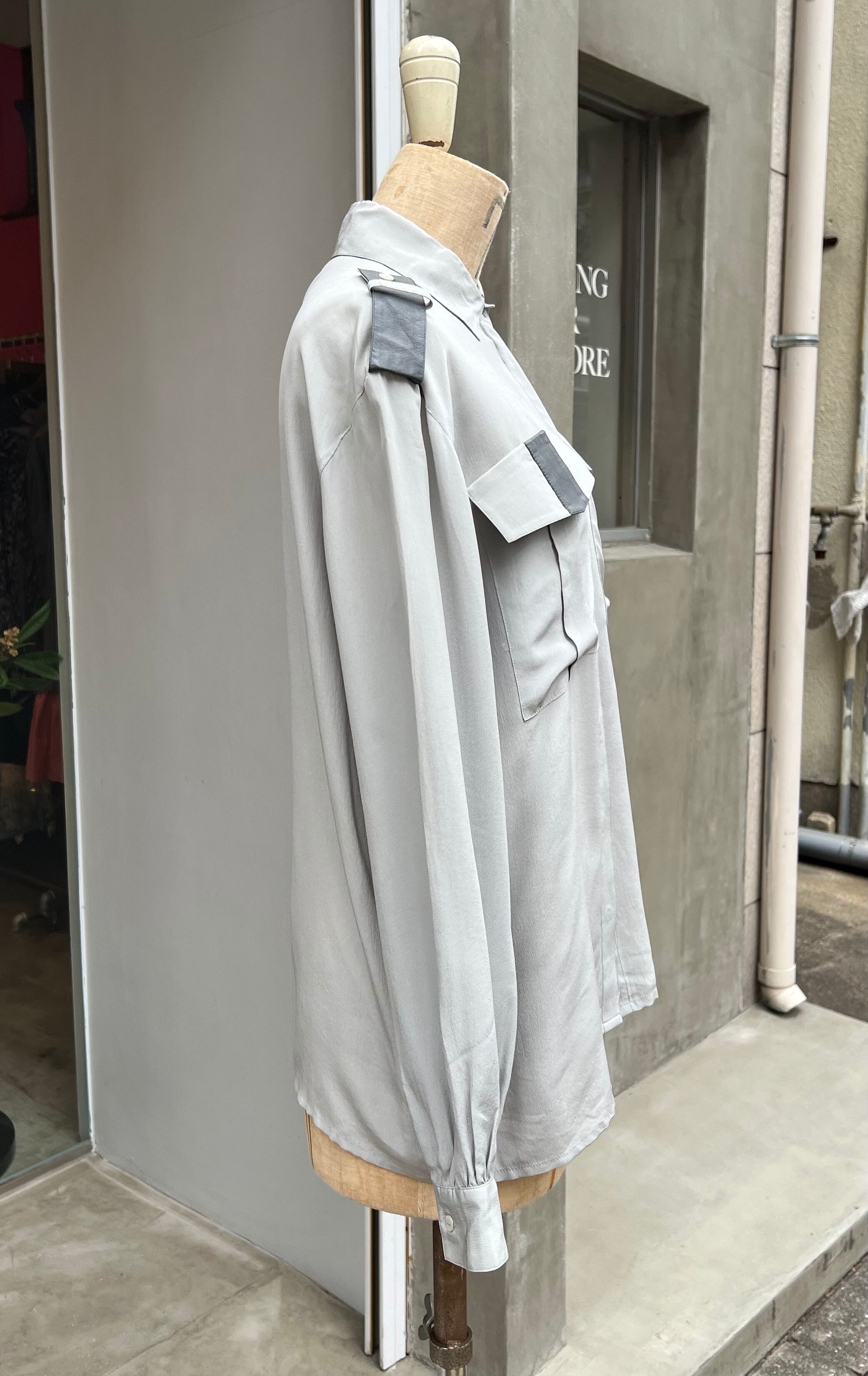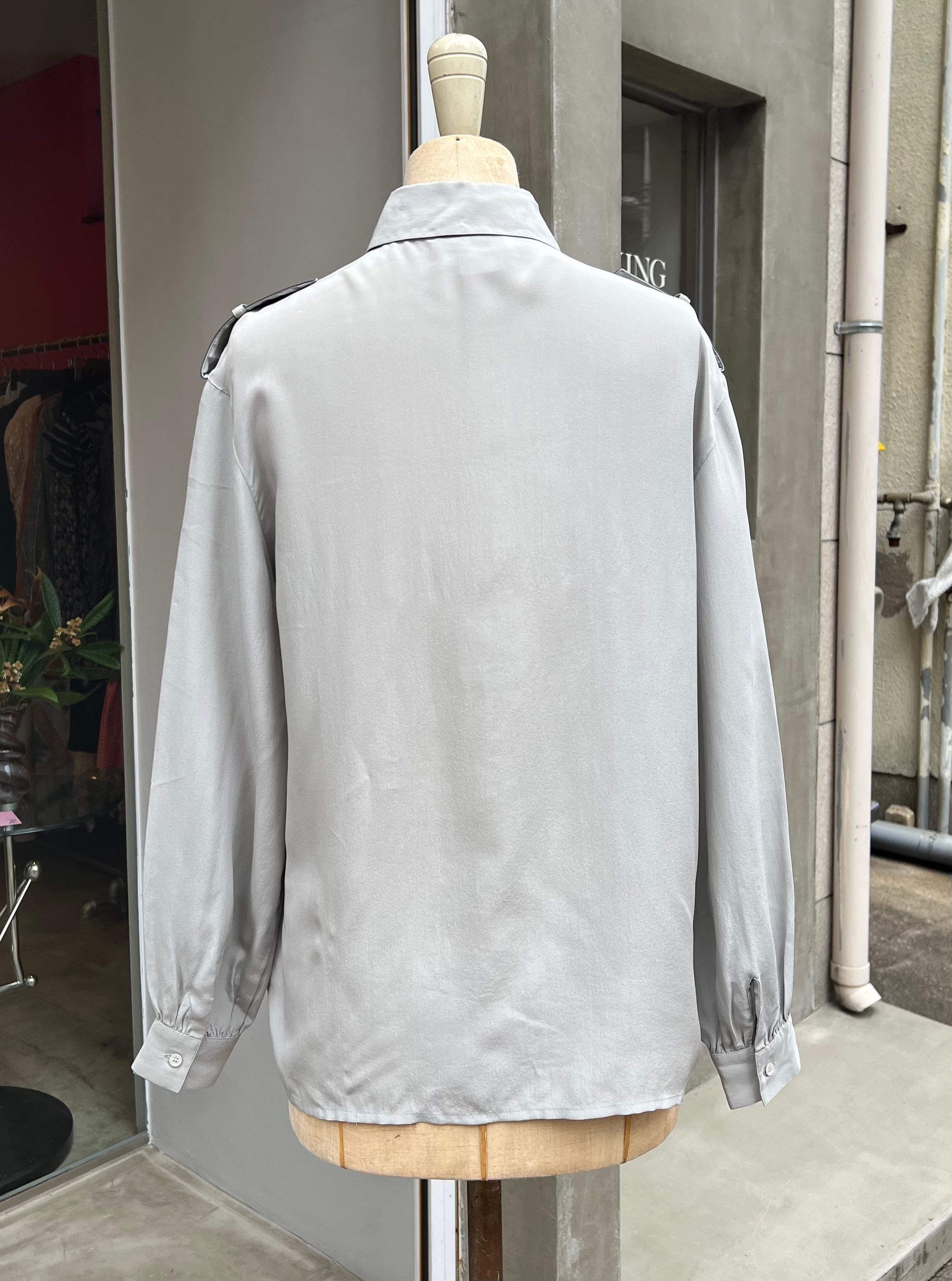 1980'S Beautiful Design Silk × Leather L/S Shirts